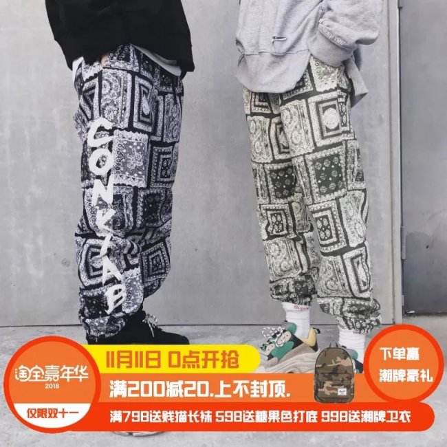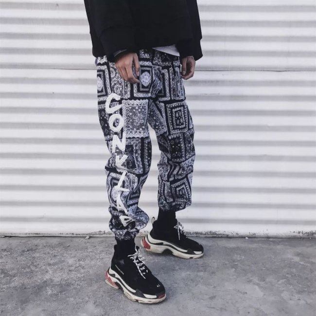 CONKLAB 腰果花涂鸦宽松束脚长裤
