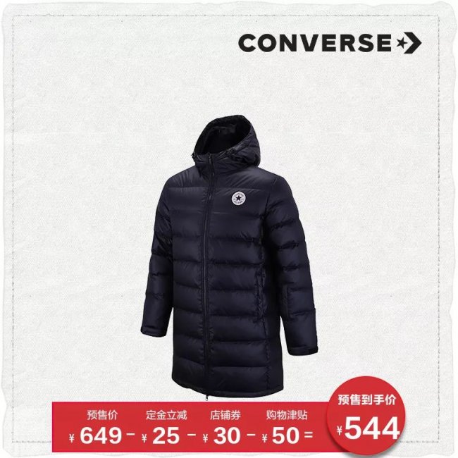 CONVERSE 长款连帽羽绒服