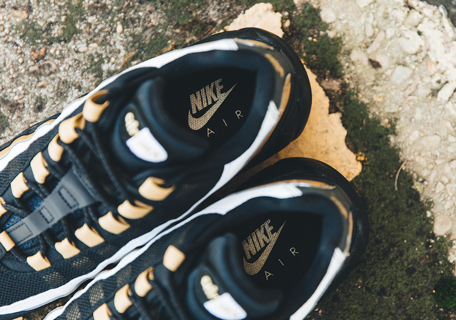 后跟处的 “Nike” 则同样采用金色呈现,彰显尊贵奢华气质。中底 Max 气垫颜色则染以黑色,延续鞋身的下方设计。整体配色感觉颇有 Nike 经典的 “金牌” 配色方案的既视感!