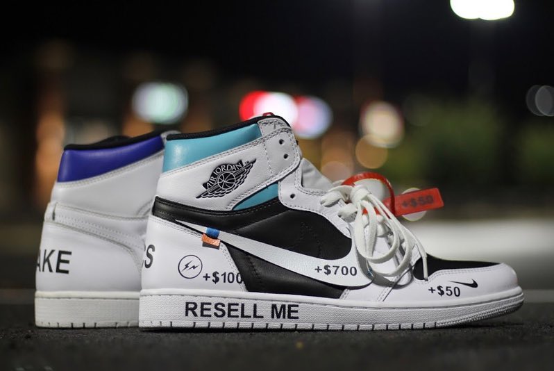 近日国外的球鞋定制玩家 @kennethcolecustoms 就用自己的方式表达出他的看法,晒出一双自己定制的另类 Air Jordan 1 “Resell Me”。