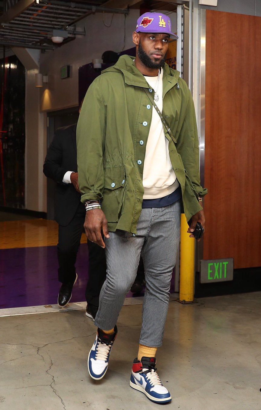 詹姆斯就亲自演绎了 Fear of God 联名和 Union x Air Jordan 1,并且还是 Union 店铺限定的配色。