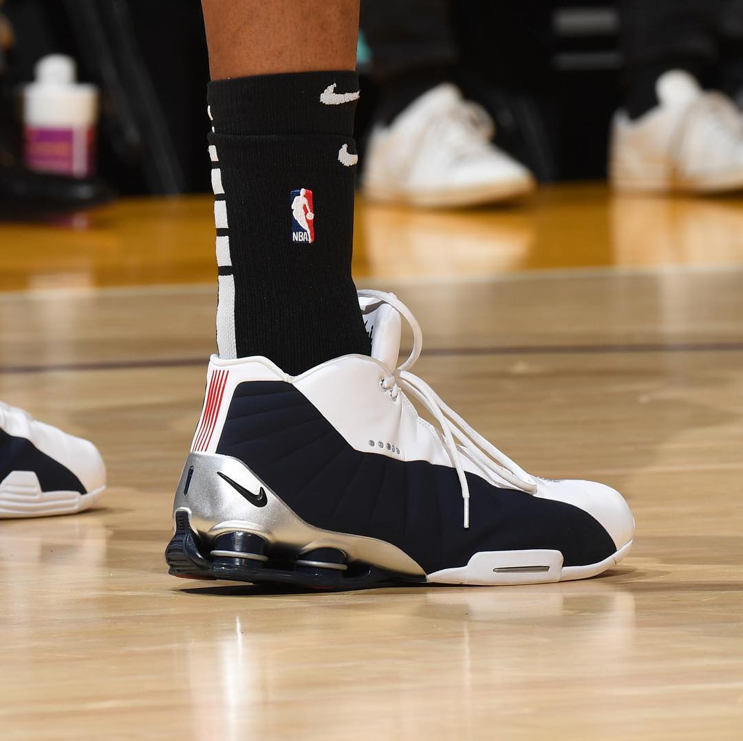 今日,卡特在对阵湖人赛前上脚这双传奇球鞋,并表示在接下来的比赛中还会继续穿着 Nike Shox BB4 多款配色。
