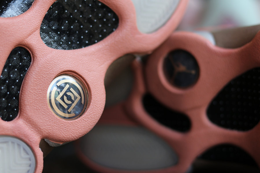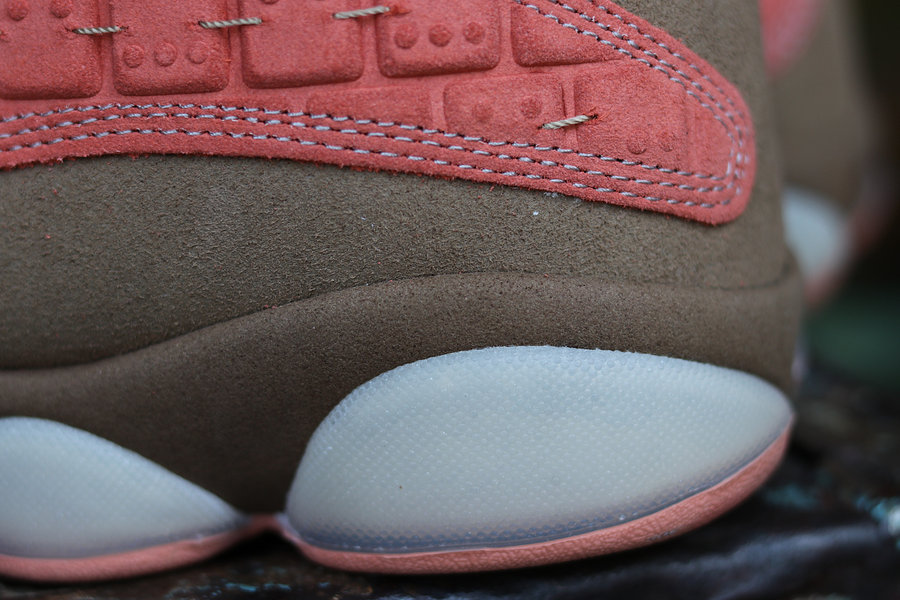 除 AJ13 醒目 “豹爪” 采用果冻胶示人外,鞋面内外侧皮革呈现也与熟悉的波点造型有着明显不同,格状纹理加线材贯穿,不禁让人联想到金缕玉衣或兵马俑这些极具中国特色的文化元素!