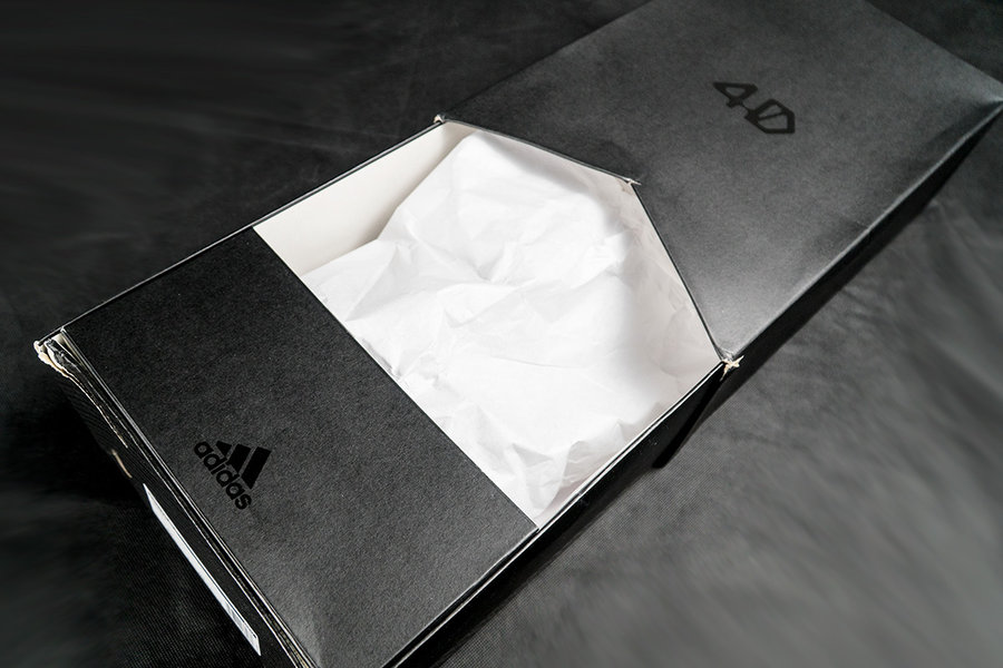 全黑的鞋盒,4D 字样同样是黑色,一黑到底,但不同质感呈现了不同的层次效果,“黑科技” 的字眼马上跳出来了。