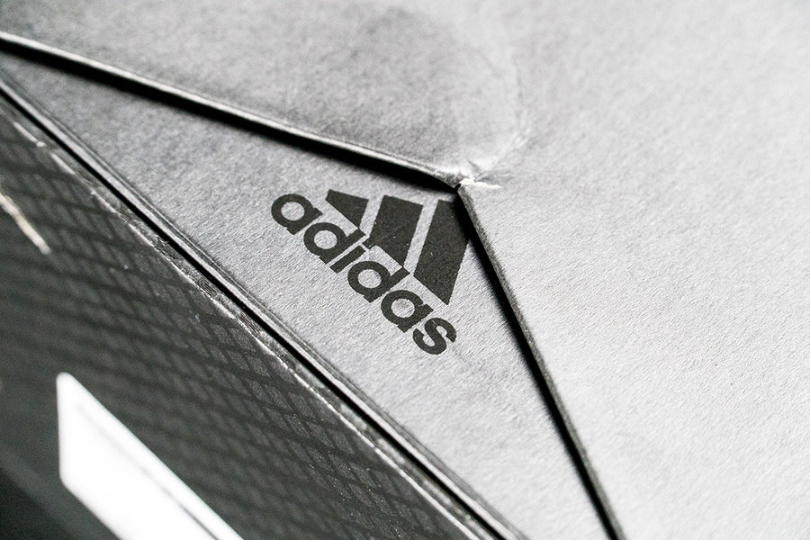 采用了抽屉式的鞋盒设计,adidas Logo 通过一个三角留空的设计展示。
