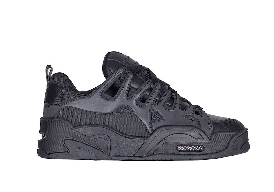鞋面拼接夸张又复杂,超厚的鞋舌设计极具滑板鞋的气息。两侧的支撑系统提供包裹的同时还有炫酷的反光效果。