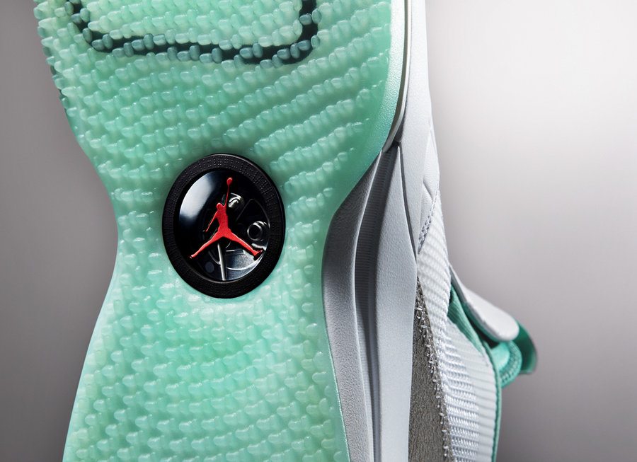 配色方案延续了前代的白色主调搭配玉石绿色点缀,整体风格依旧帅气清新。皮革部分使用了方形压纹代替 AJ32 上的豹纹,更具高级质感。FastFit 科技的拉带和缝线等细节以红色点缀,展现出极强科技感。