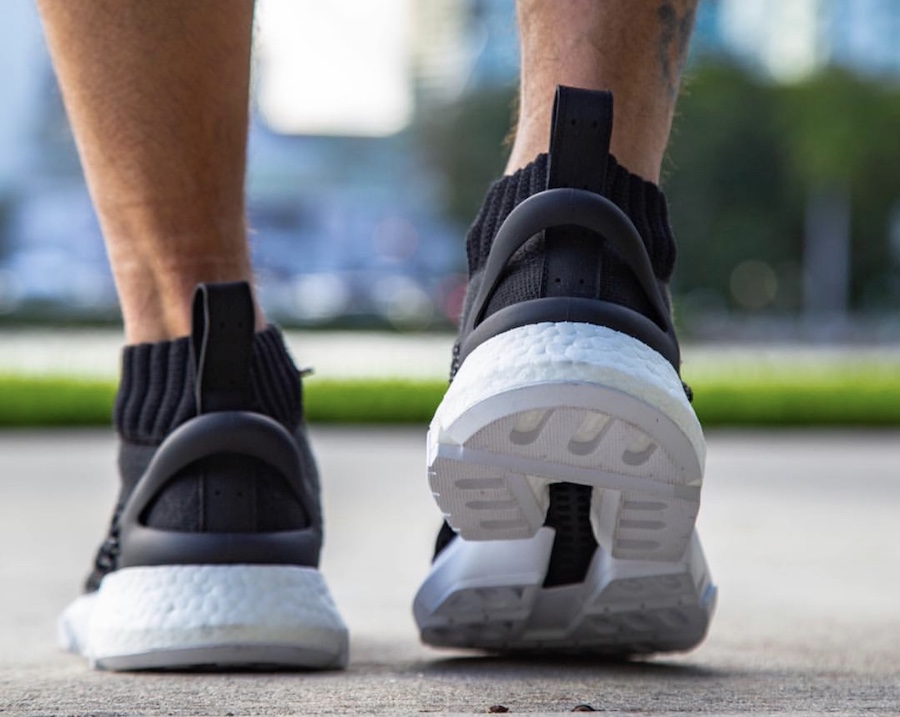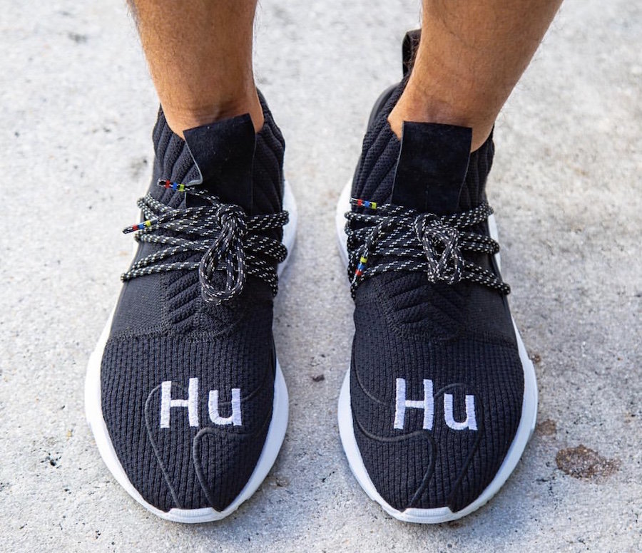 编织鞋面能看出 BYW X 的影子,刺绣 “Hu” Logo 依旧醒目,鞋身两侧的支撑与鞋带系统又与 adidas NMD Hu Trail 非常相似。