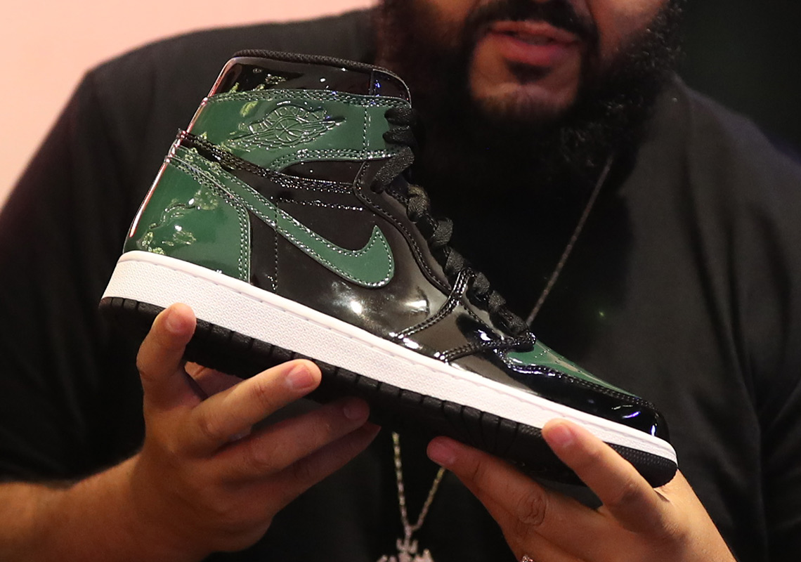 此次将联手 SoleFly 主理人以及乔帮主的妹夫,为我们曝光了两双重磅联名的 Air Jordan 1,一款与 “扣碎篮板” 颇为相似,另一款则以黑绿漆皮装扮呈现。