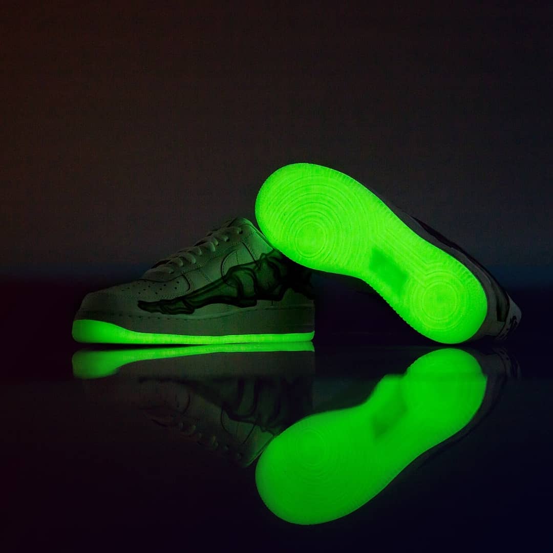 这款骷髅透视 Air Force 1 可以说是今年脑洞最大的一款配色,带有恐怖元素的外观与万圣节无比契合,再加上夜光外底,让喜欢搞怪的潮人无法拒绝。
