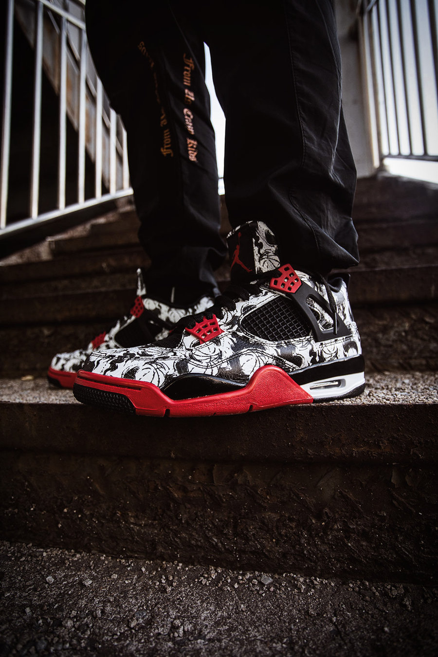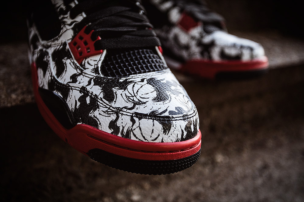 这款专为光棍节打造的 Air Jordan 4 是首次由中国设计师打造,以经典的红白配色为基底,鞋面印有水墨风格的篮球图案。
