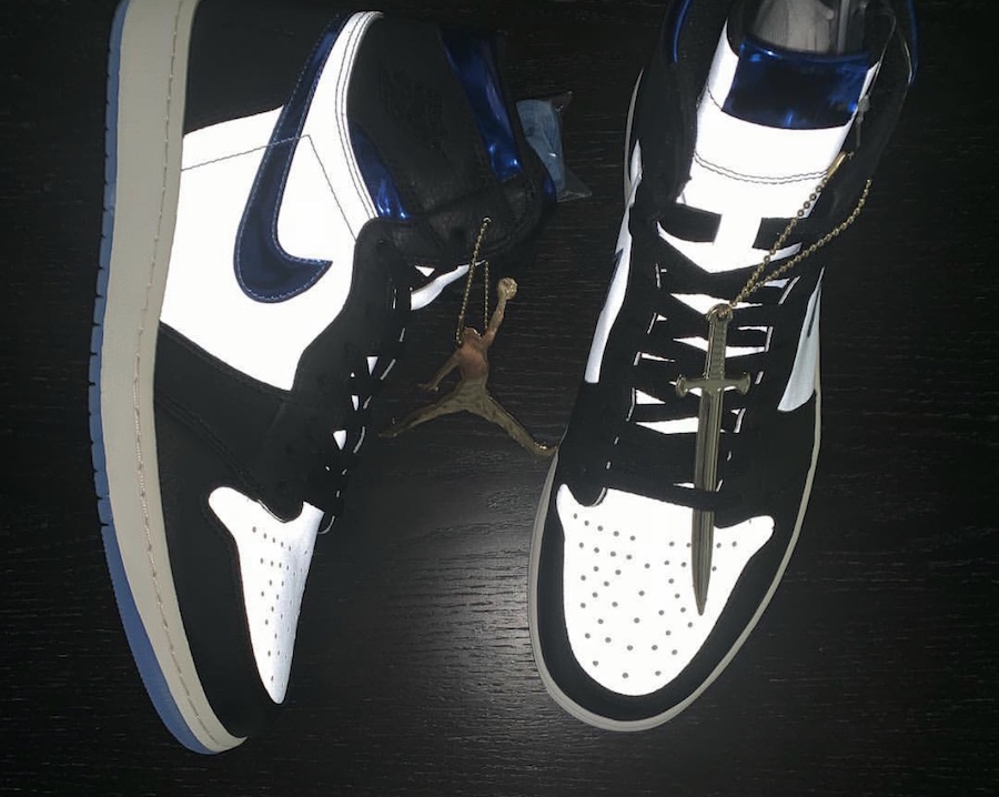 这双稀有配色使用 Air Jordan 1 最受欢迎的黑脚趾主题,优质荔枝皮打造鞋面的黑色部分,白色则使用大面积的 3M 反光材质打造。