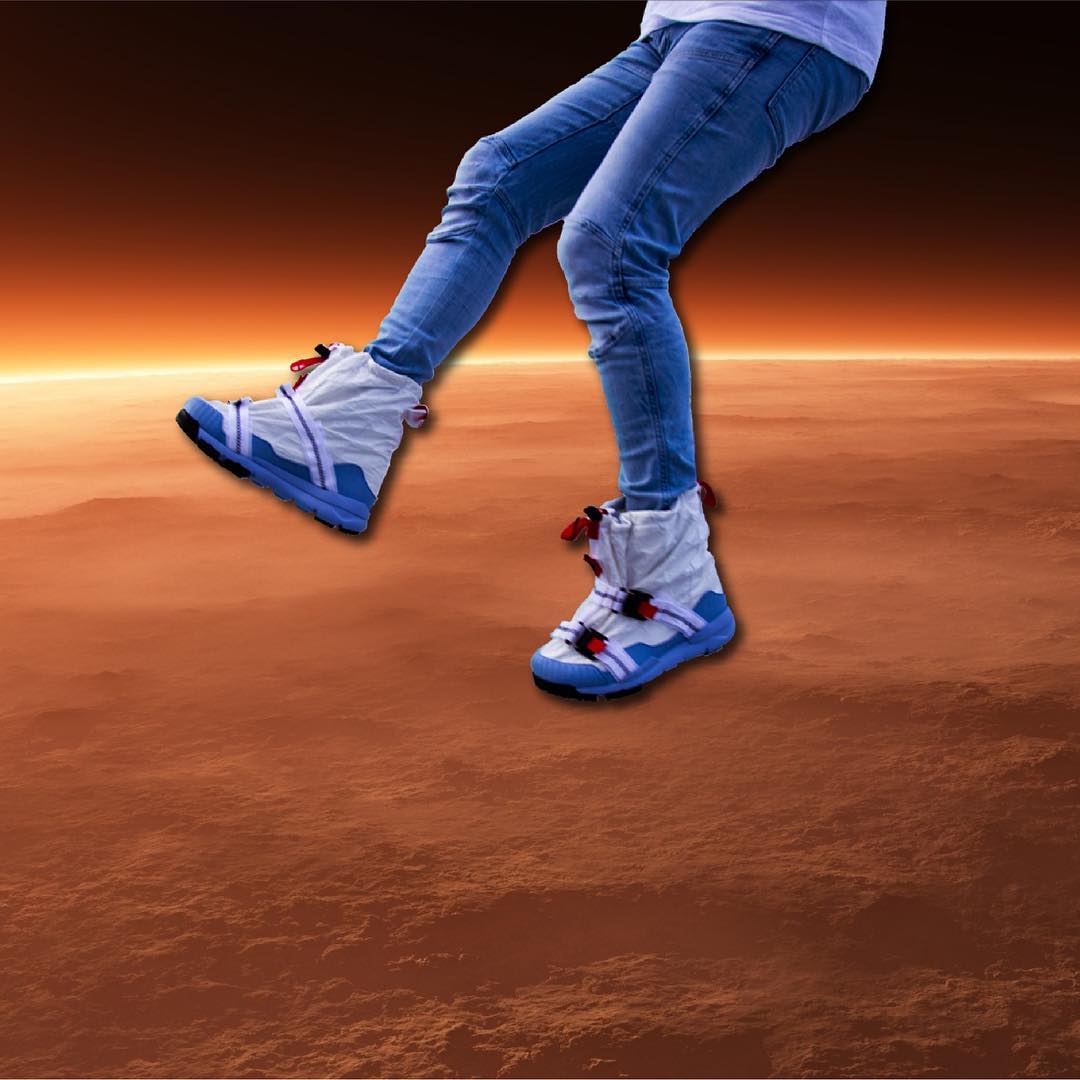 在本次设计上 Tom Sachs 打破传统火星鞋设计,将太空靴的设计理念完美融入全新联名。