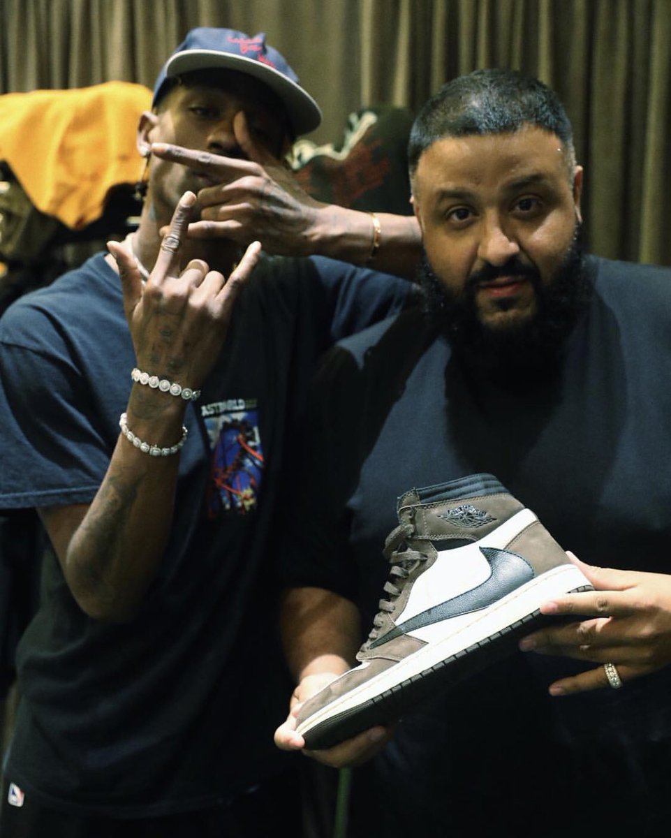 这次麦克康利上脚了传言要复刻的摩卡配色 Air Jordan 3 Mocha,Travis Scott 也为 DJ Khaled 送上了他最新的、尚未发售的 Air Jordan 1 联名新鞋。
