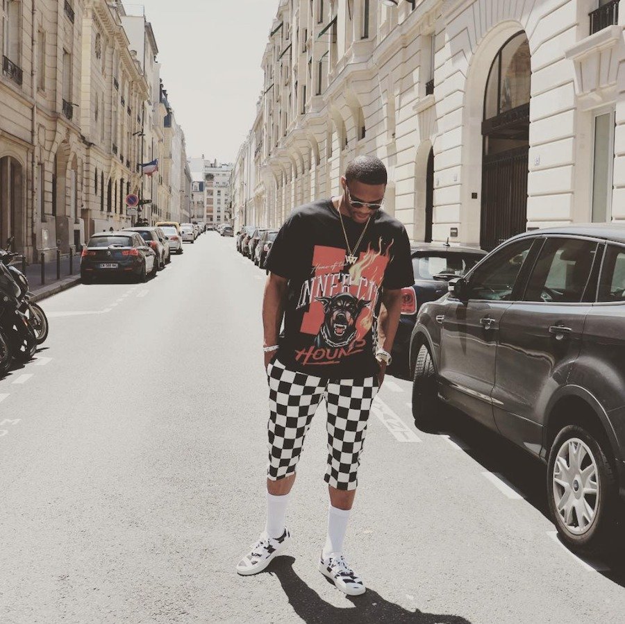 威少本人已经在巴黎时装周期间提前上脚了这双配色,与他的棋盘格六分裤完美搭配,可以看得出来时尚感非常浓郁。
