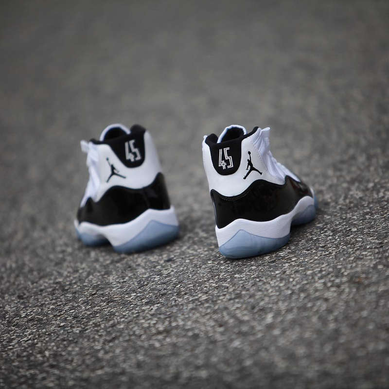 其中最经典的当属东部决赛对阵魔术系列赛期间上脚的 Air Jordan 11 “Concord”,首次复出后的乔丹因其 23 号球衣已退役,只好换上 45 号球衣。
