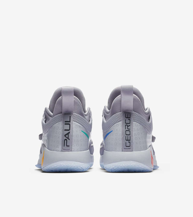 中底及内侧的 Swoosh Logo 则以红、绿、蓝和紫四色呈现,源于主机手柄的四个按键。后跟处的 “Paul George” 字样,及鞋垫上联名双方标志性的 Logo,辨识度极高。