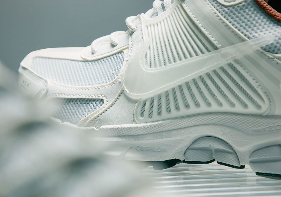 全新的联名系列同样有低帮款式的 Air Force 1 Low,但更受关注的,则是眼前的 ACW x Nike Zoom Vomero +5。