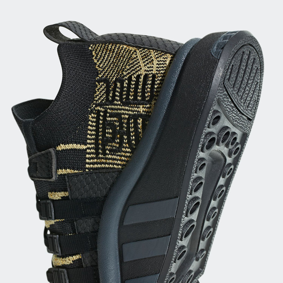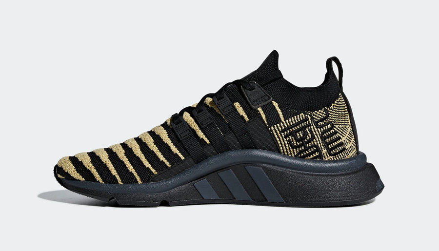 神龙主题鞋款以 adidas EQT Support Mid ADV PK 为蓝本打造,编织鞋面呈现出独特的凹凸质感和双色纹理,鞋身多处使用鳞片纹理皮料,更突显神龙主题。