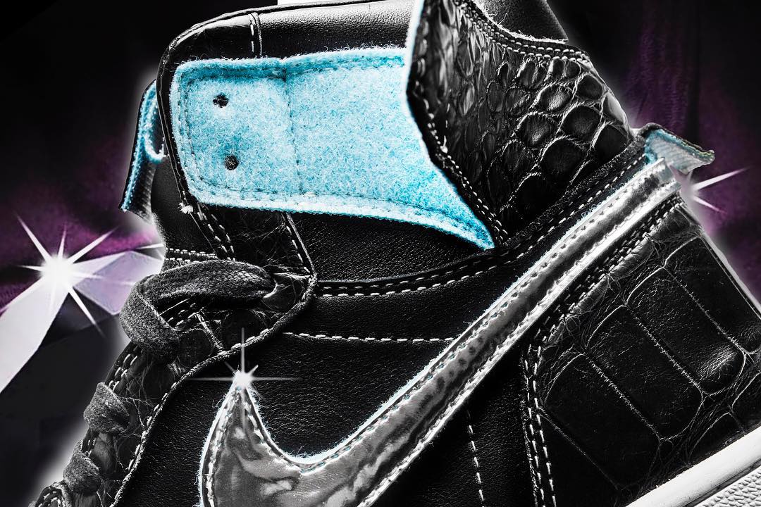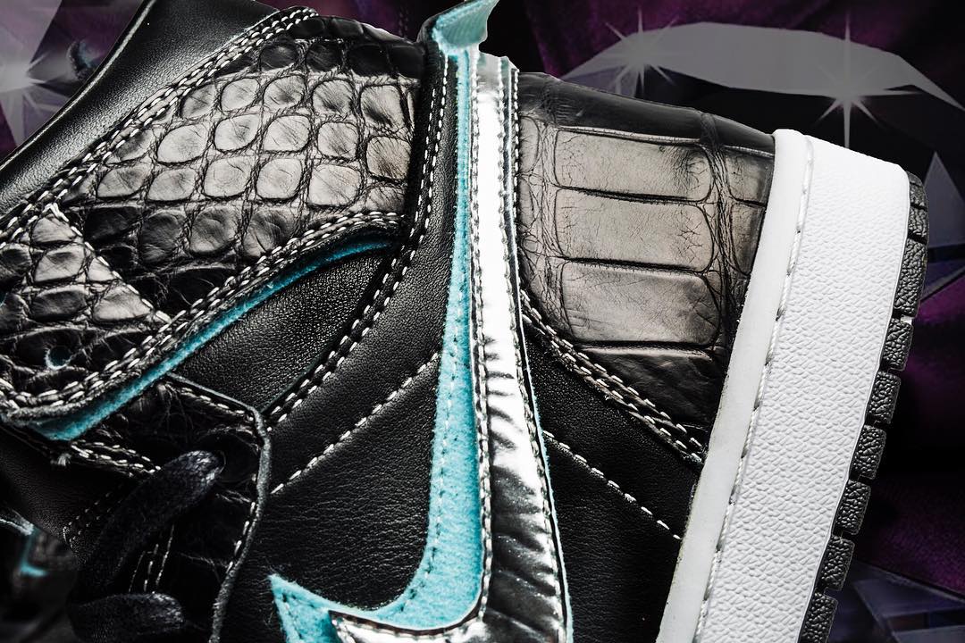 Air Jordan 1 “Diamond Black” 鞋身运用了经典的蟒纹材质打造而成,Nike Swoosh 则由银色进行点缀,内衬以及细节保留了 “蒂凡尼” 蓝色,整体效果即奢华又大气!