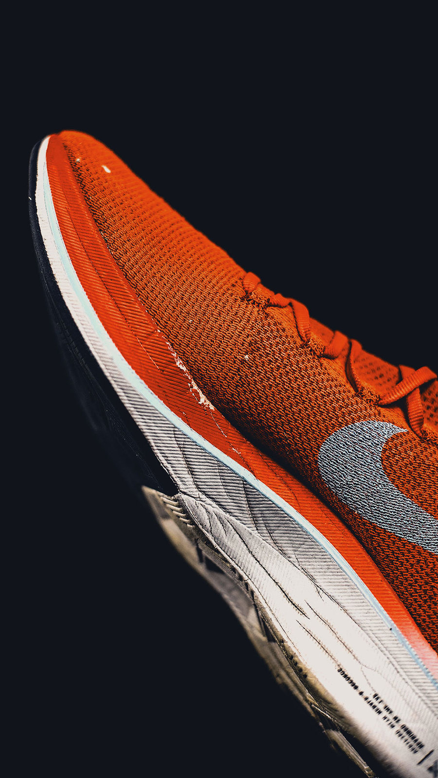 在上海马拉松赛事中,小编选择了 Nike Zoom VaporFly 4%,超轻的鞋身减少在跑步过程中的能量损耗,中底由全掌高性能 ZoomX 缓震泡棉 + 贯穿足底的铲型碳板合力打造,不仅缓震反馈明显,所带来的向前推动力更是令人兴奋。