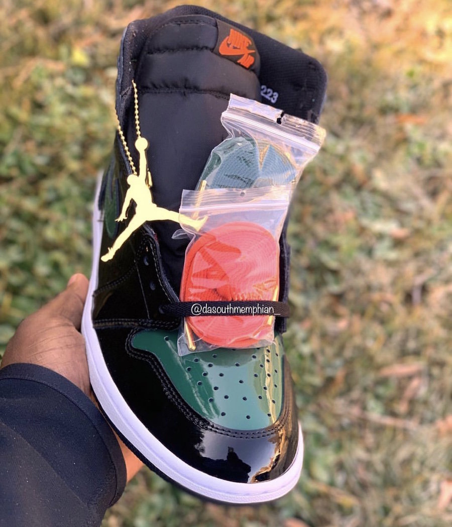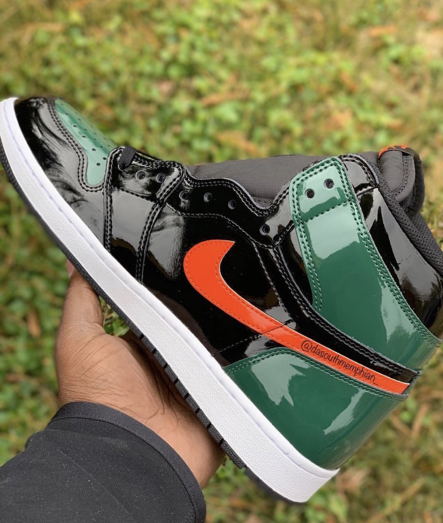 本双超限量联名最大的特点则是,鞋身由黑、绿色漆皮材质装扮,内侧与外侧辅以阴阳 Swoosh 点缀,深绿与暖橙完美碰撞出迈阿密风情。