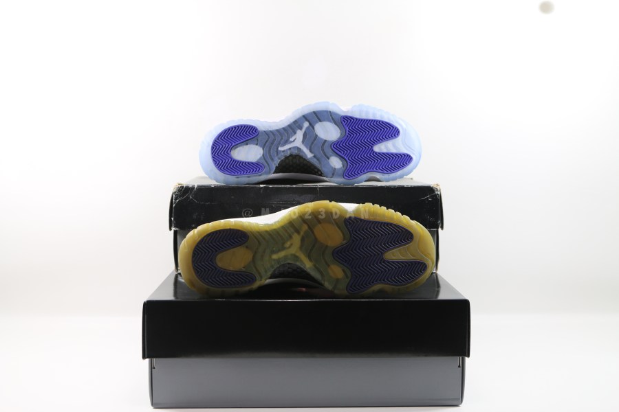 近日球鞋网站 mjo23dan 做了一件非常有趣的事,他们把最初 45 后跟的 Air Jordan 11 “Concord” Sample 版本和马上要市售的版本进行对比,整体造型与每一处细节都有非常详细的对比。