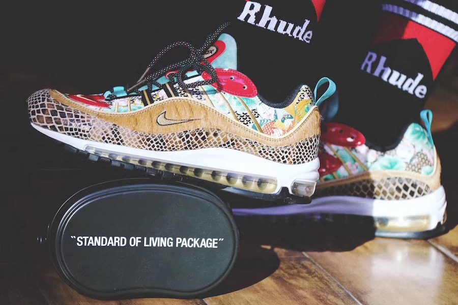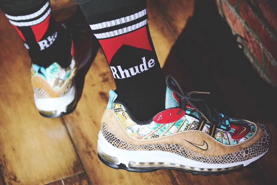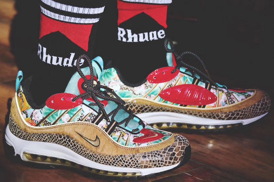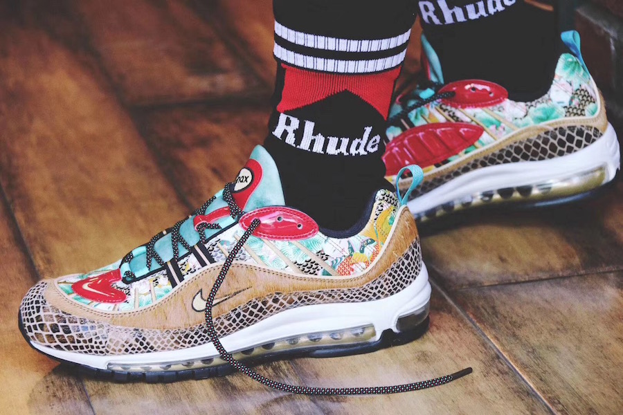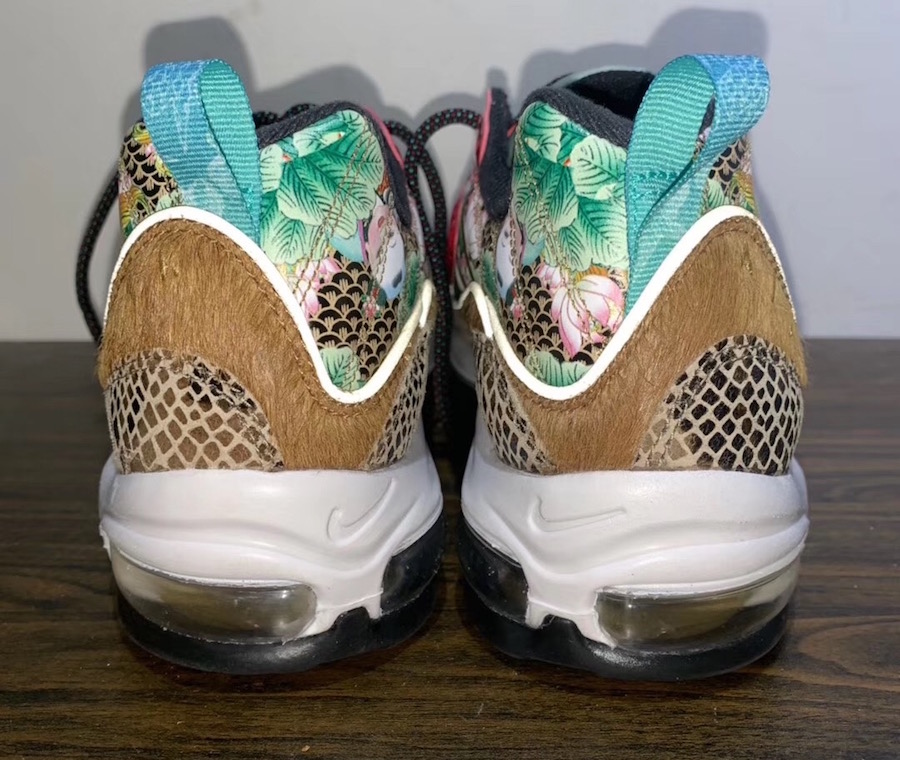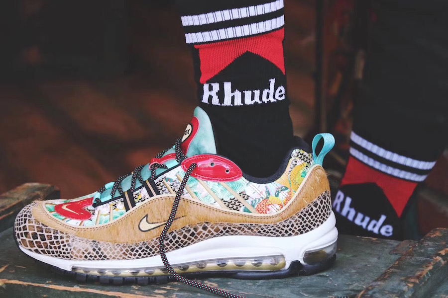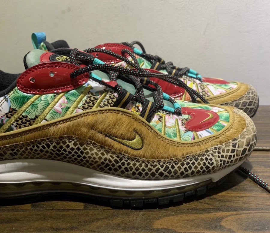 2015 年,一款以 “喷泡之乡” 为主题的天津喷横空出世,凭借独特的年画装扮和稀有的数量,备受玩家们追捧,五位数的价格更让它成为大家心中的神物。近期天津喷上的年画元素再度现身,一款带有年画装扮的 Air Max 98 将于明年春节期间发售。
