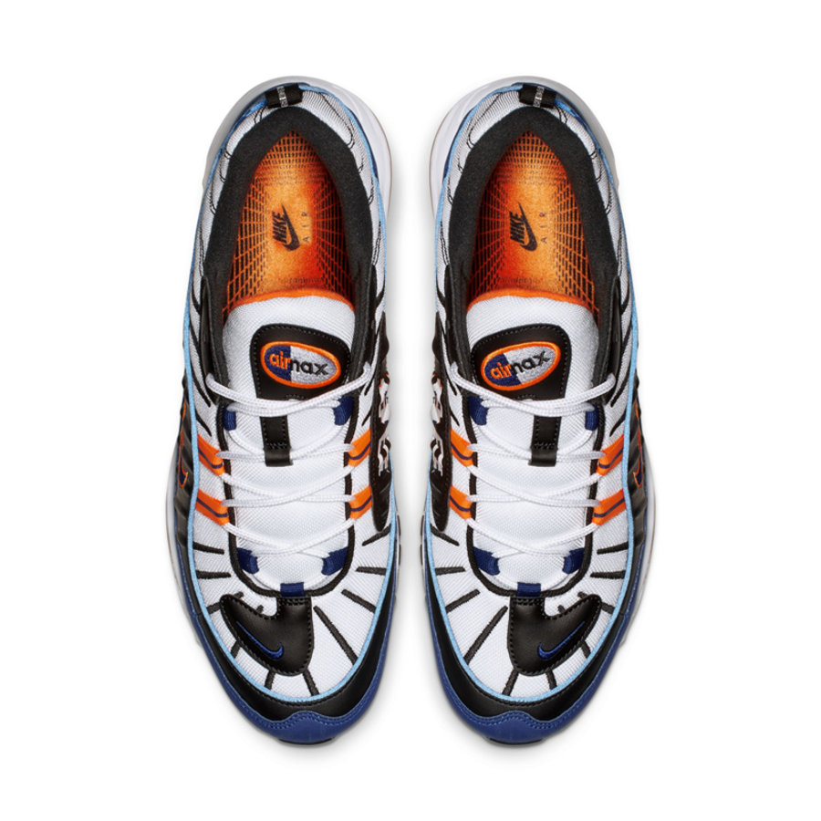 今年 Nike Air Max 98 回归,已经带来多款配色。接下来还将有新品推出,除了明年春节的天津喷年画配色,还有一款尼克斯蓝橙配色近日曝光。 鞋面以黑白蓝三色为主体,搭配橙色和蓝色点缀,颇具纽约尼克斯队的风格。鞋面内侧以像素风数字点缀,鞋垫上印有格纹印花,使整双鞋颇具电子风气息。 目前暂无发售信息释出,我们将持续关注并第一时间带来报道。
