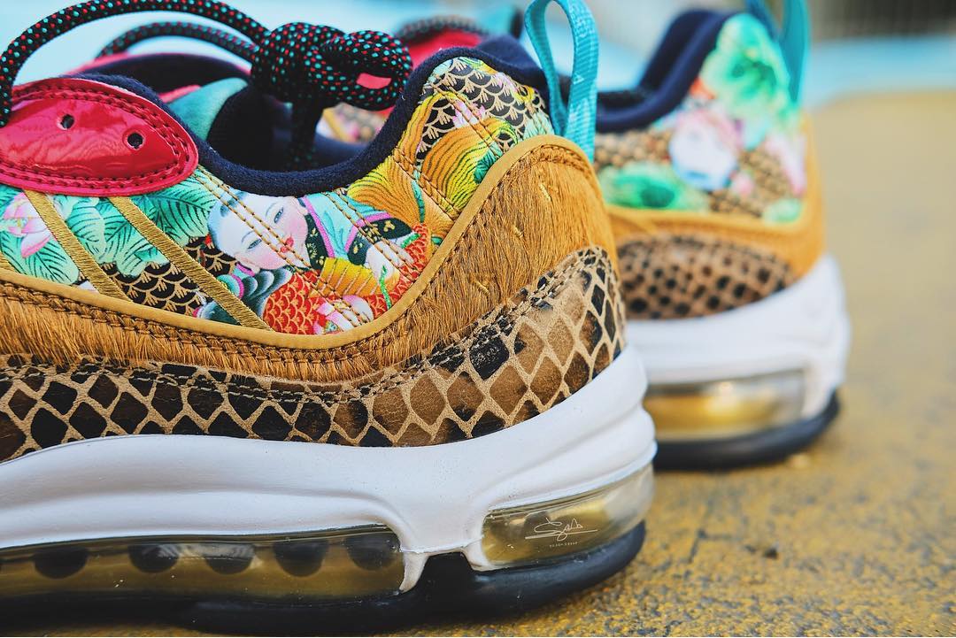 前段时间一双专为明年春节打造的全新 Air Max 98 首次曝光,凭借丰富的细节和与天津喷相似的年画图案而受到不少人的关注,近日球鞋摄影师 @s.sam.group 带来最新实物美图。