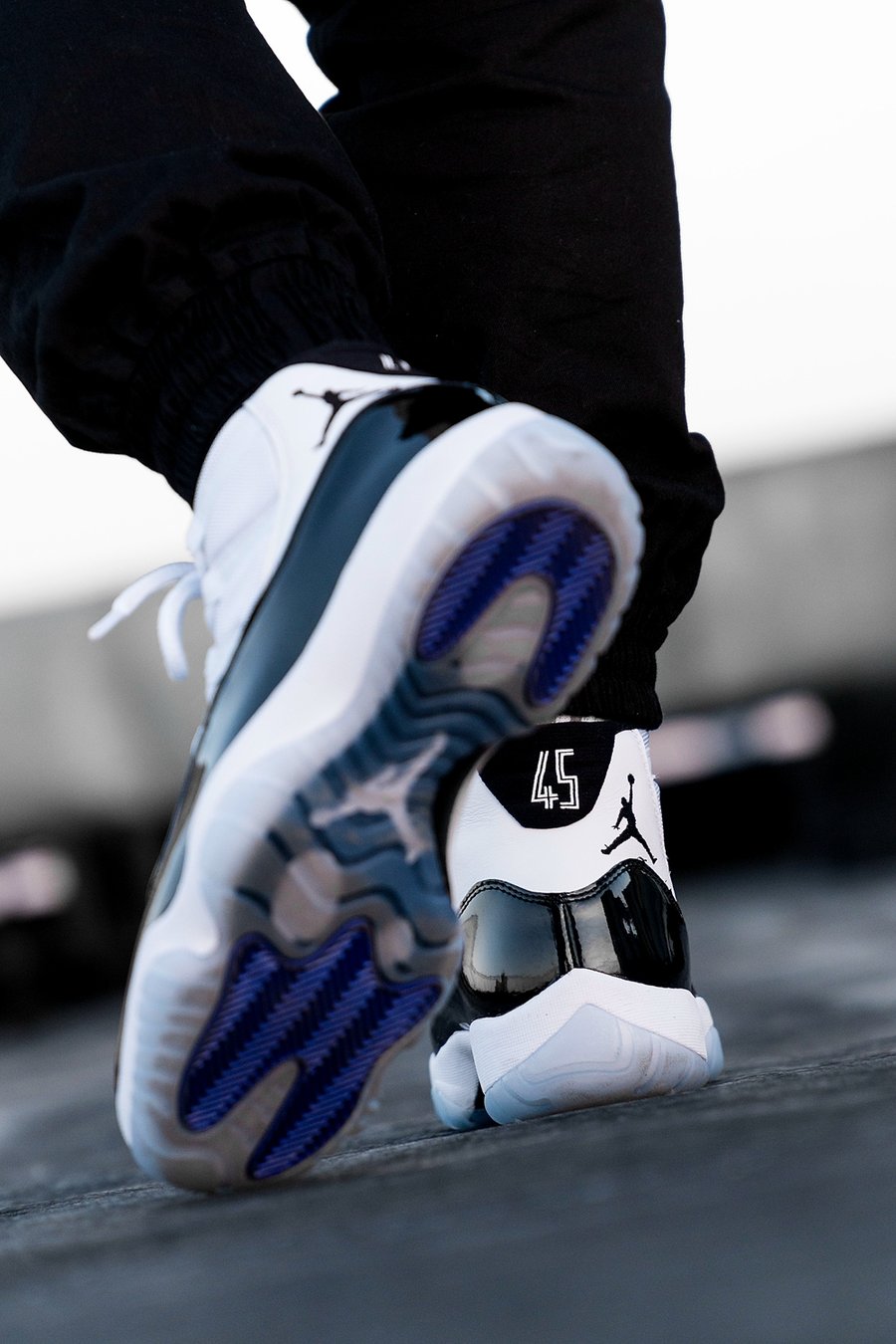 当年后跟标有 45 号码的 Air Jordan 11 “Concord” 除了乔丹亲自上脚的那双,就只剩下极为罕见的 Sample 版本,普通球鞋玩家几乎没有可能入手!