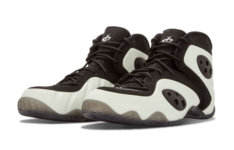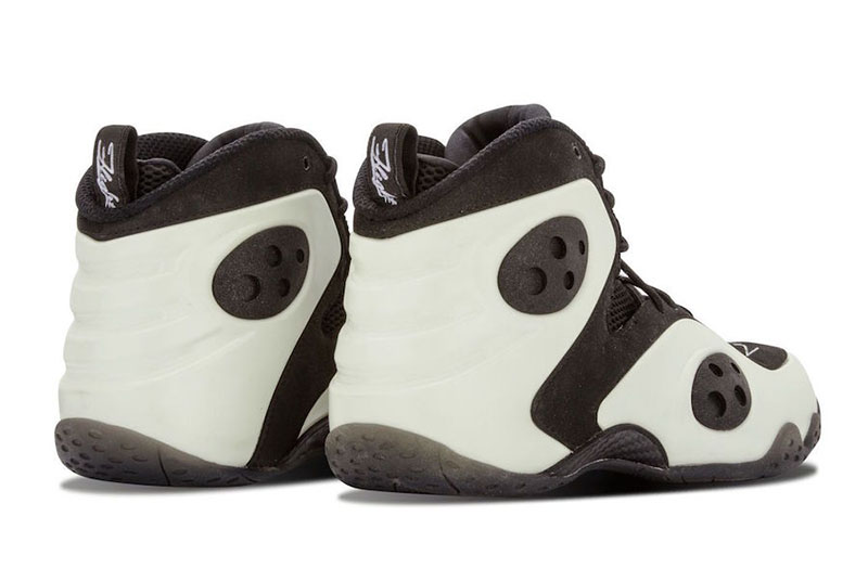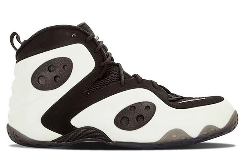 乳白色发泡材质与黑色磨砂皮革拼接打造鞋身,内侧与后跟的纹理勾勒,流露出 Foamposite 独特的视觉冲击。中底内嵌碳板 和 Zoom Air,哪怕现在看,依旧是顶级鞋款才有的专属配备!