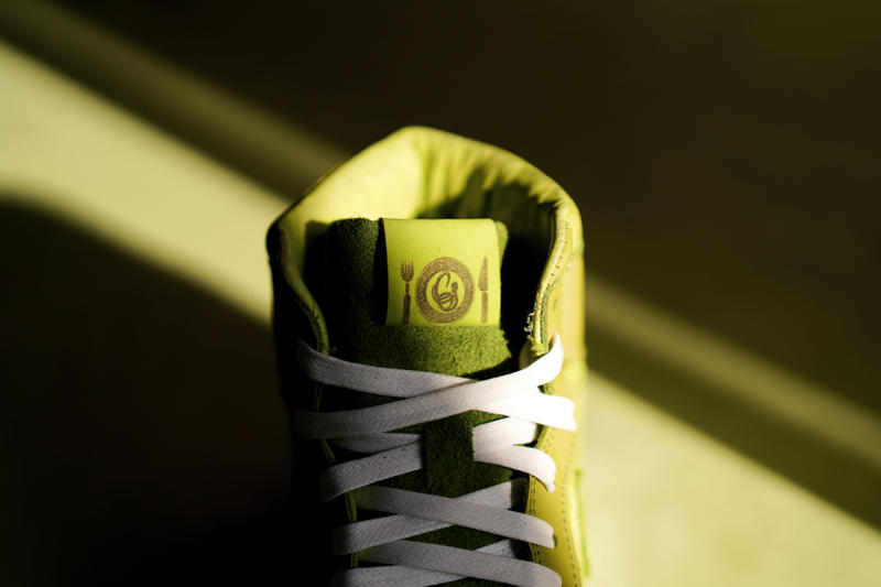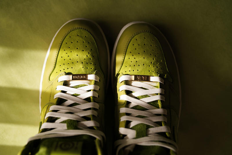这是一双来自球鞋定制单位 Chase Shiel 的定制作品,但它居然也是同球鞋摄影师 ryustyler 的联名! 将球鞋同餐具、食物融合在一起拍摄,是 ryustyler 独特的造型风格,而这双 Air Jordan 1 “抹茶” 则更是将鞋款改造成了实物的模样。 以清新怡人的抹茶绿贯穿,在材质的选用上也格外用心,打造了抹茶粉的覆盖效果。 由于是定制作品,无法量产,这双「联名定制」鞋款已经售罄,大家只能通过摄影师的镜头,一览它的独特魅力了!