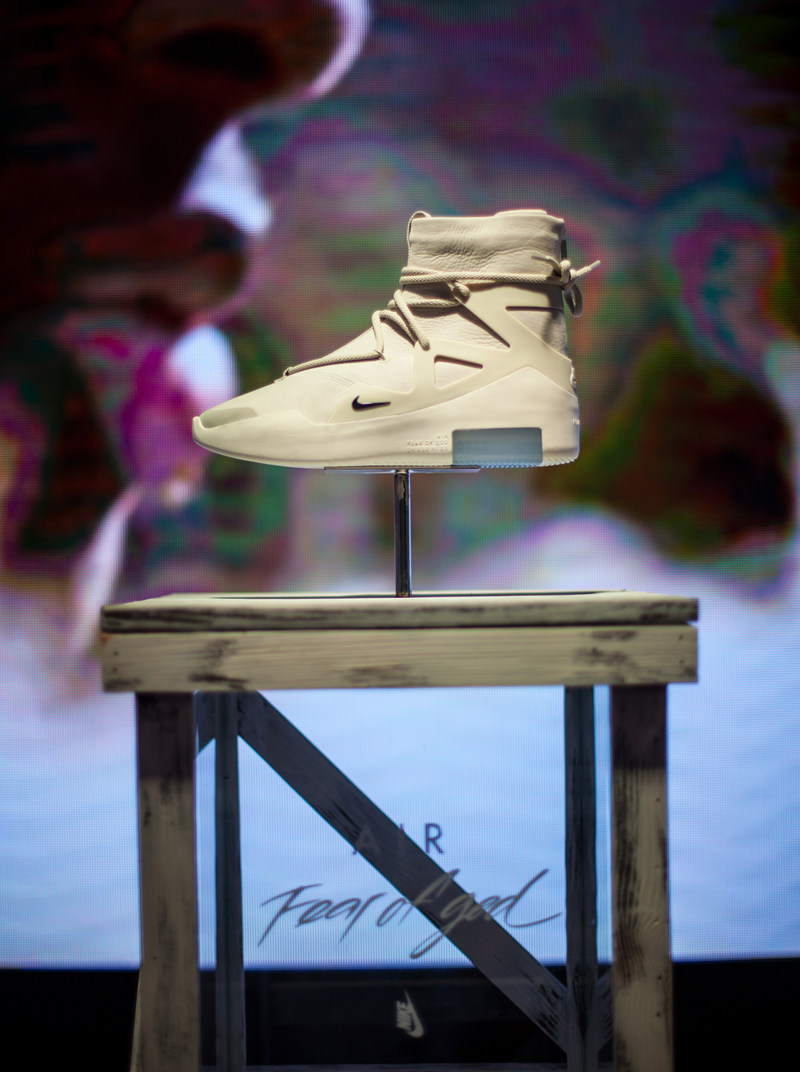 除了 “兵马俑” 以外,展台内同样展出了在国内的首次亮相 “鞋王” Air Fear Of God 1,凭借超高的颜值 Air FOG 1 真的吸了不少粉,不过据了解现场仅发售了 30 双,看来本月中旬发售时货量同样不会很大。