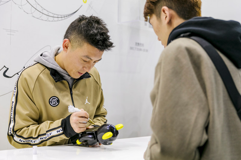 相比于 Air Jordan 展台的重磅连连,adidas Originals 展台更看重与潮人们的交流互动,球鞋定制、T 恤定制,只要排队了都有机会体验到,不仅展现独特个性, 还能带走哦!