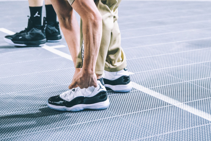 脚上穿着当天发售的 Air Jordan 11 “Concord”,同样是全场的焦点。