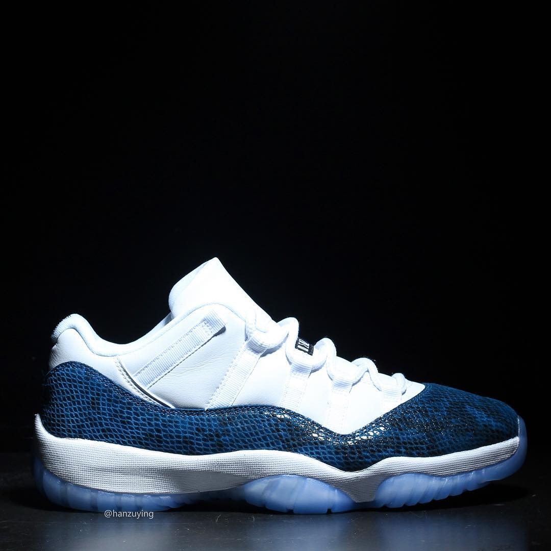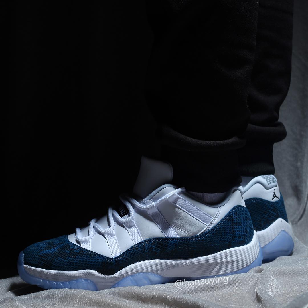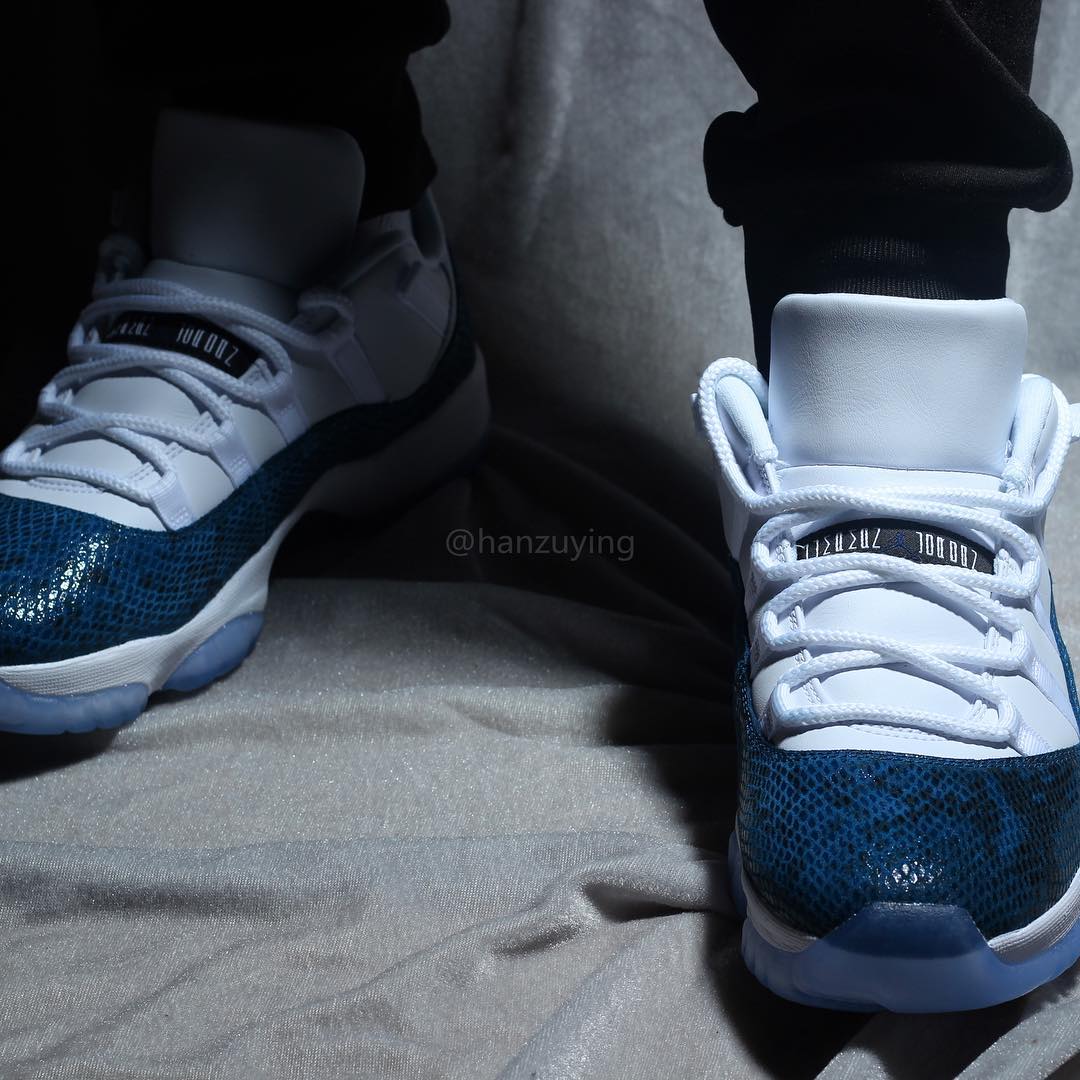 今天上午蓝蛇 Air Jordan 11 Low “Snakeskin” 首次曝出实物后,收到了极高的关注度,随即 Instagram 球鞋账号 @hanzuying 带来了这双鞋的更多实物细节。