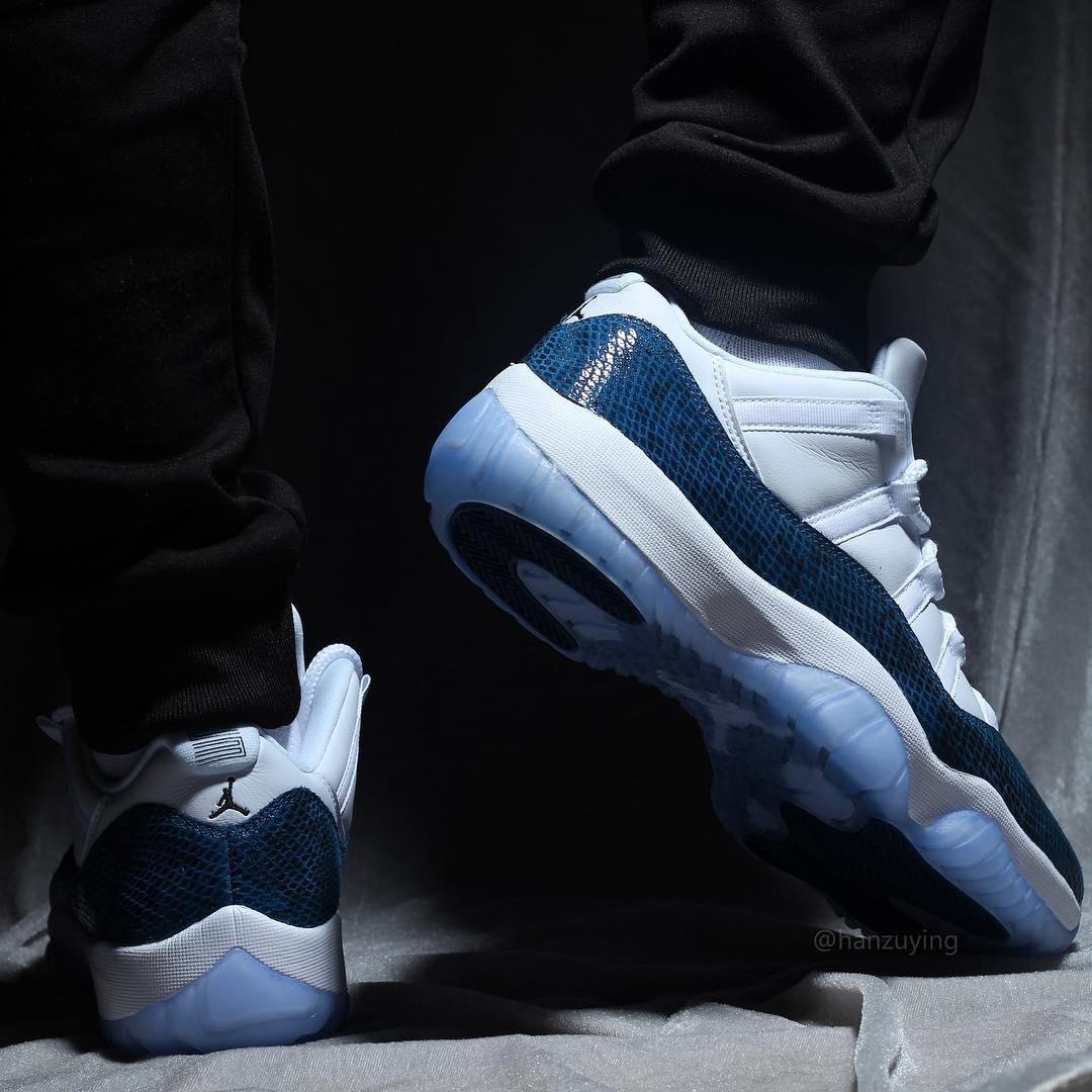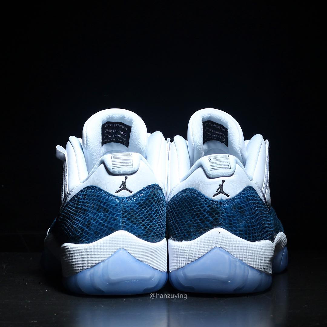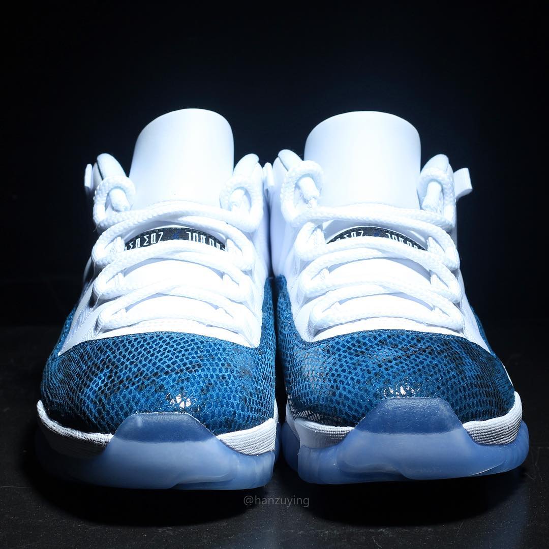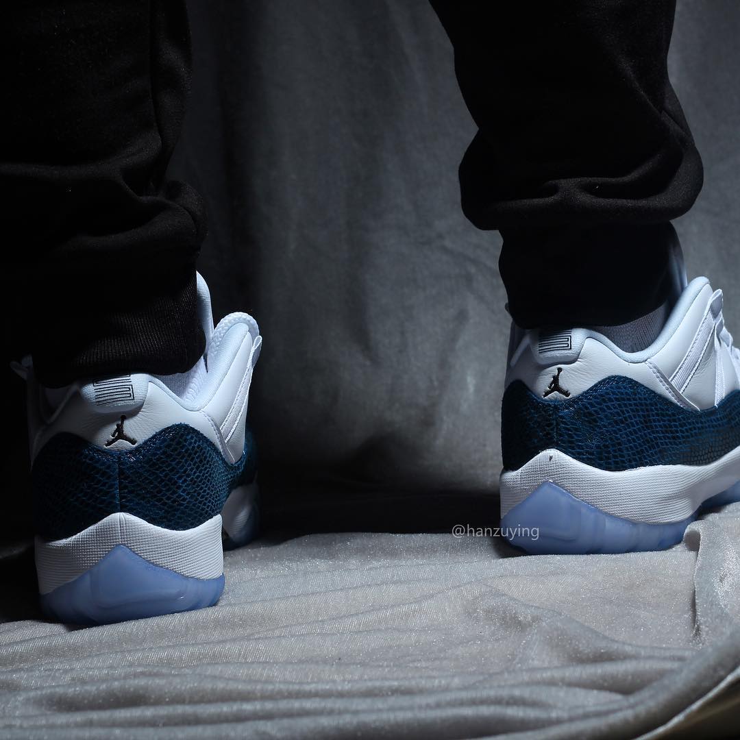 今天上午蓝蛇 Air Jordan 11 Low “Snakeskin” 首次曝出实物后,收到了极高的关注度,随即 Instagram 球鞋账号 @hanzuying 带来了这双鞋的更多实物细节。