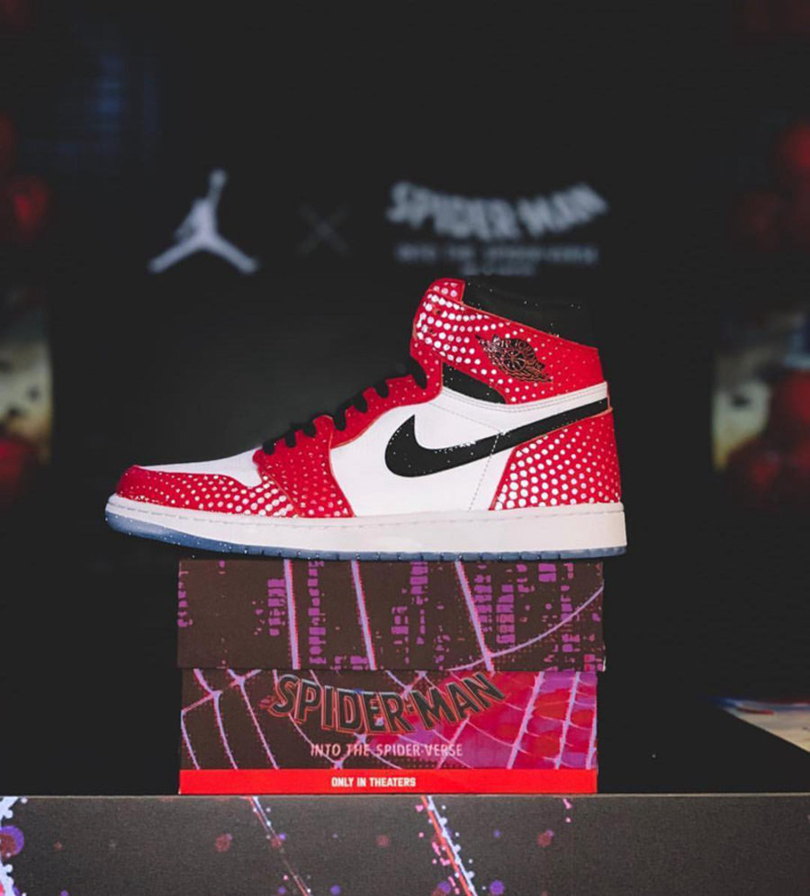 这款酷似芝加哥的 AJ1 专为即将上映的漫威动画电影 《蜘蛛侠:平行宇宙》 打造。不仅上脚造型经典,仔细观察还能发现鞋面还有反光波点设计,搭配透明外底,带来让人耳目一新的个性元素。