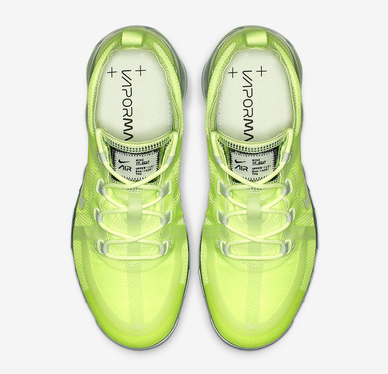 眼前这双 Nike Air VaporMax 2019 WMNS "Volt" 整体采用荧光绿示人,贯穿足底的 VaporMax 气垫不仅脚感澎湃,跟泛有珠光质感,视觉呈现也颇为醒目亮眼,上脚表现相信吸睛指数极高!