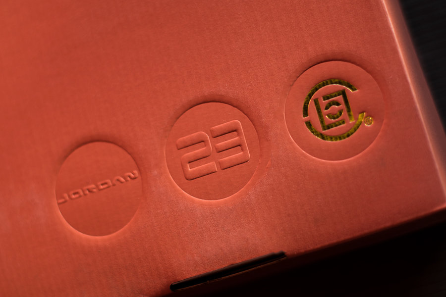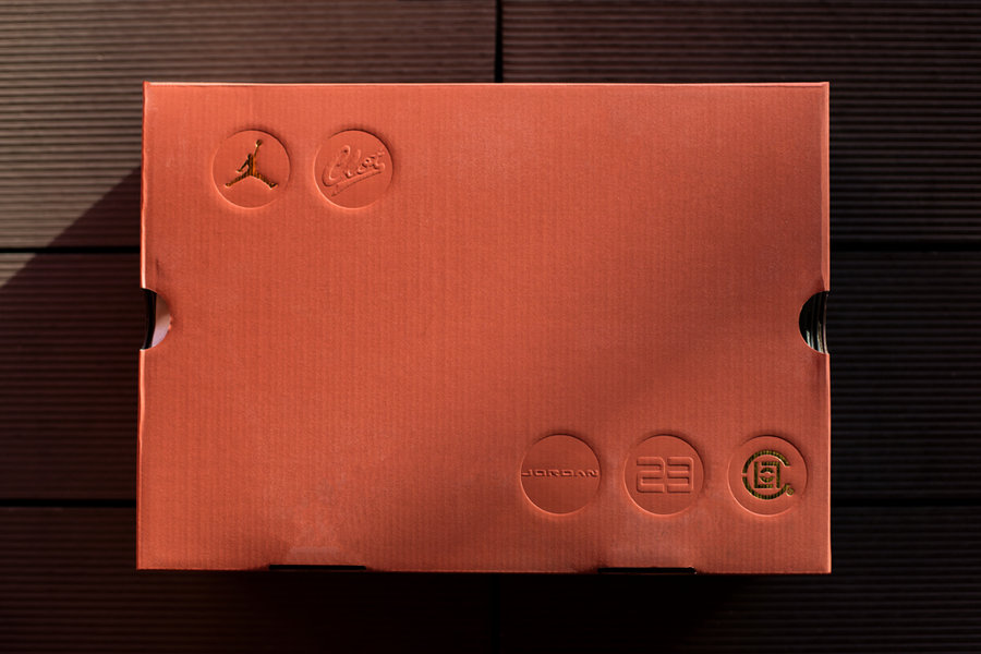 首先从鞋盒就能看出来这次联名的规格极高,五个立体 Logo 印在鞋盒盖上,整个鞋盒还是磨砂质感。