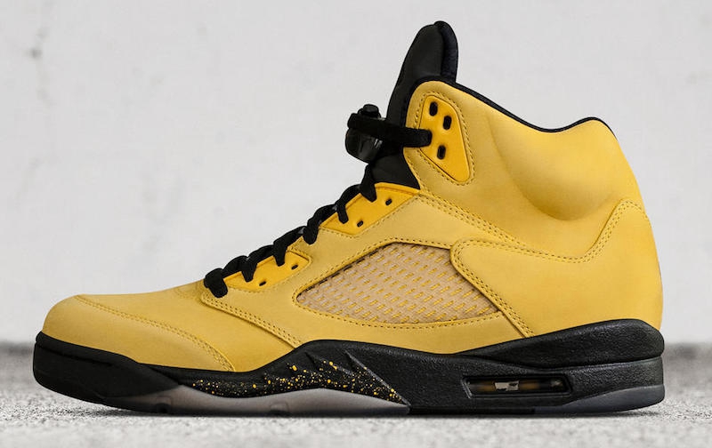 该鞋是 Jordan Brand 为致敬 NCAA 历史上著名的 “密歇根五虎” (克里斯·韦伯、朱万·霍华德、杰伦·罗斯、杰米·金、雷·杰克逊)为灵感打造,明黄鞋身彰显密歇根大学队服的颜色主题。