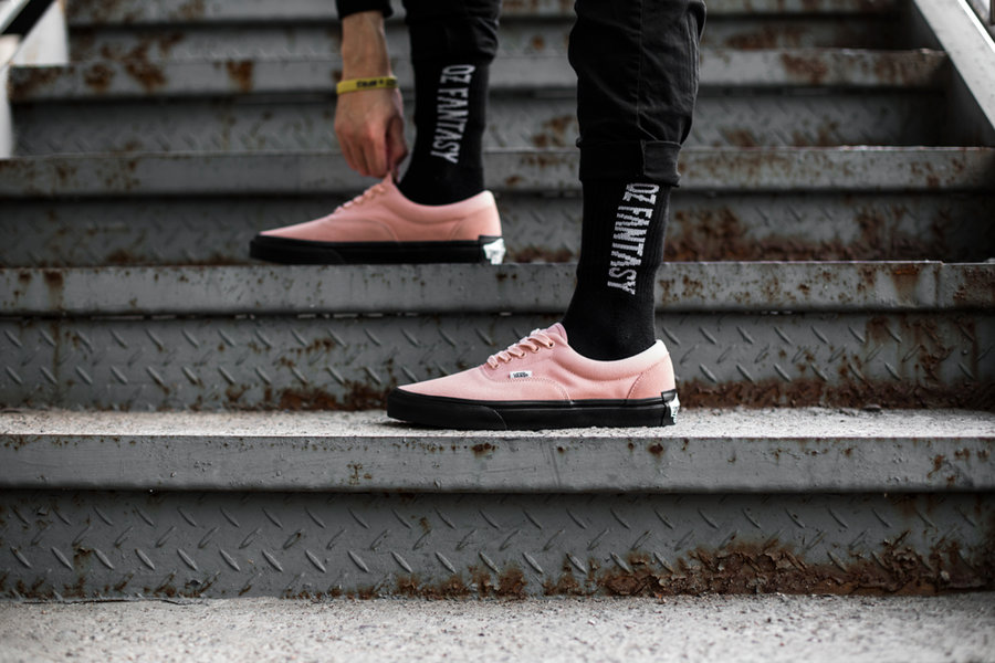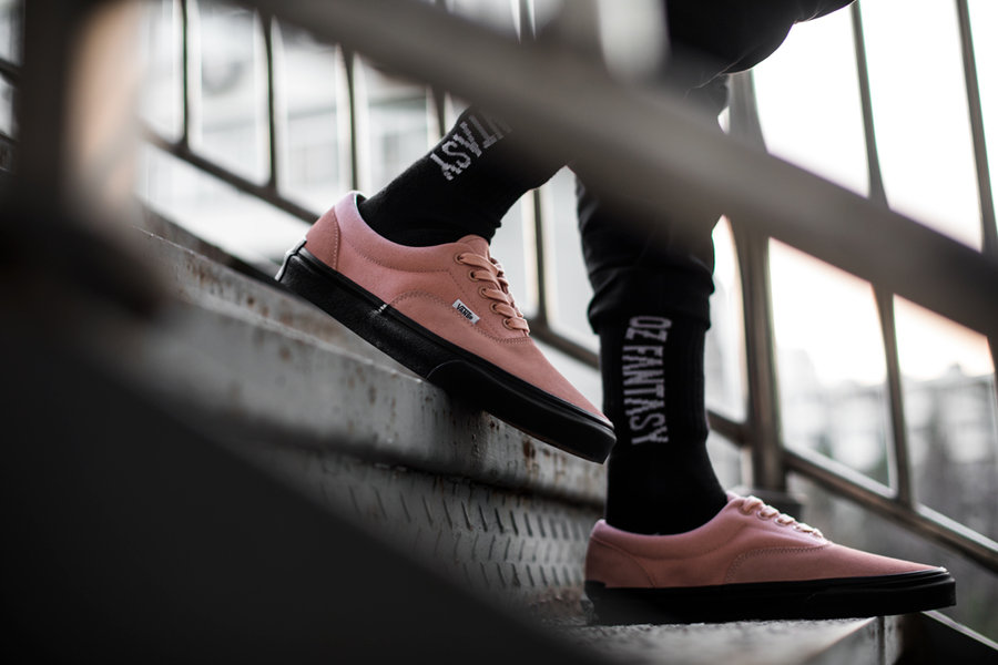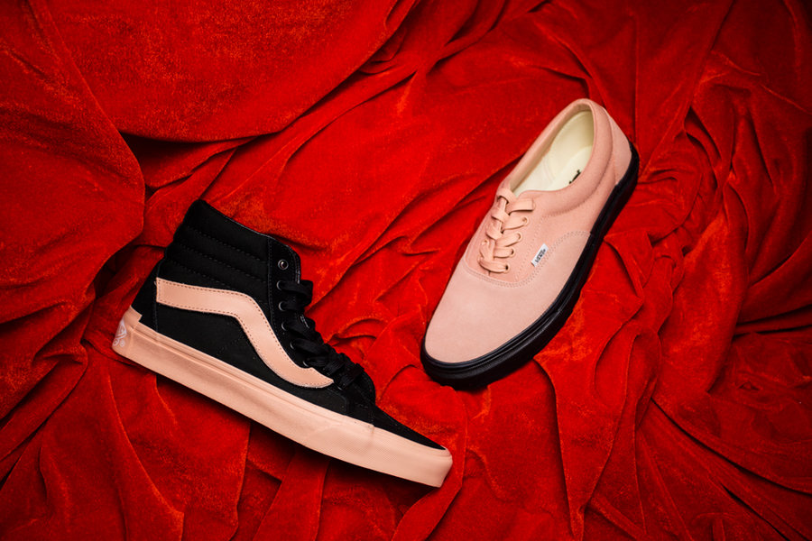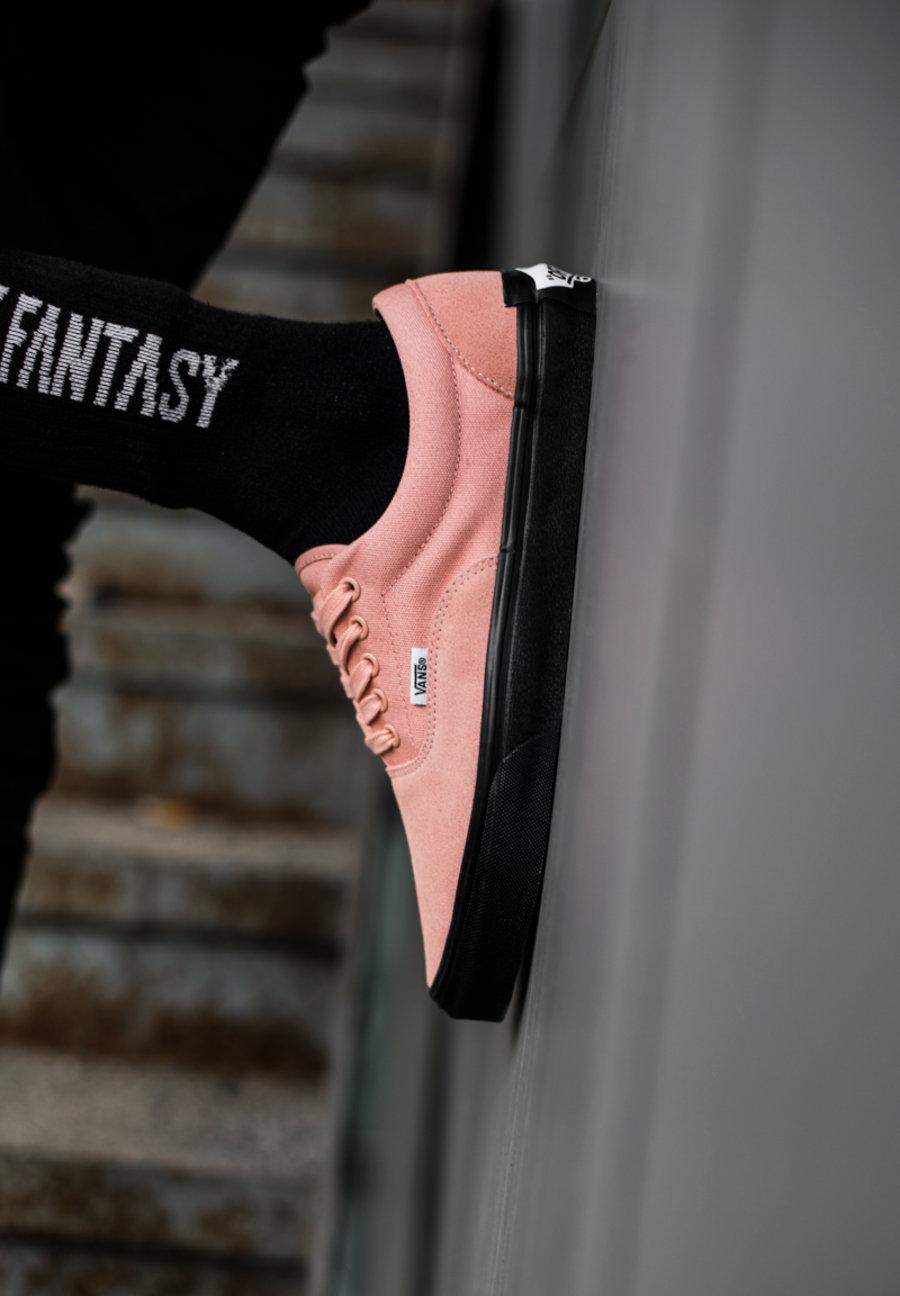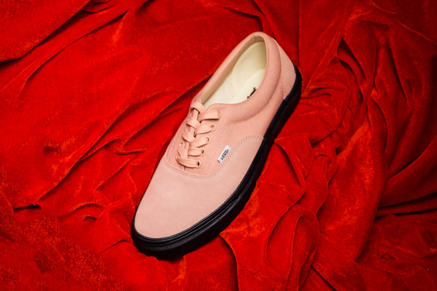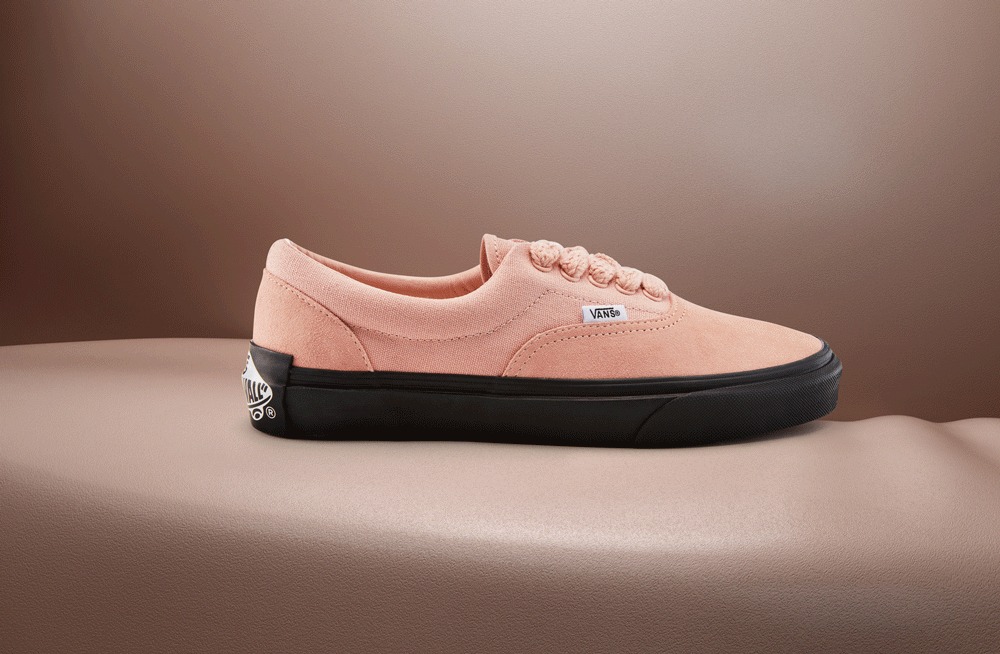 Vans Era 作为主打款式,鞋面使用帆布与麂皮拼接,巧妙融入猪年专属的肉粉色,展现猪年 “不胖,不立” 的主题,和 2019 年的流行色珊瑚橙还有几分相似。