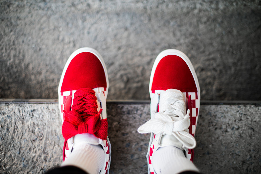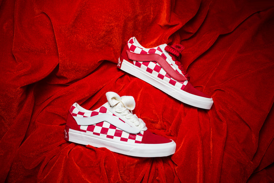 红白棋盘格 Old Skool 的经典地位无需多说,同样有 “变肥” 的白色侧边条纹设计,如何搭配全凭个人喜好。