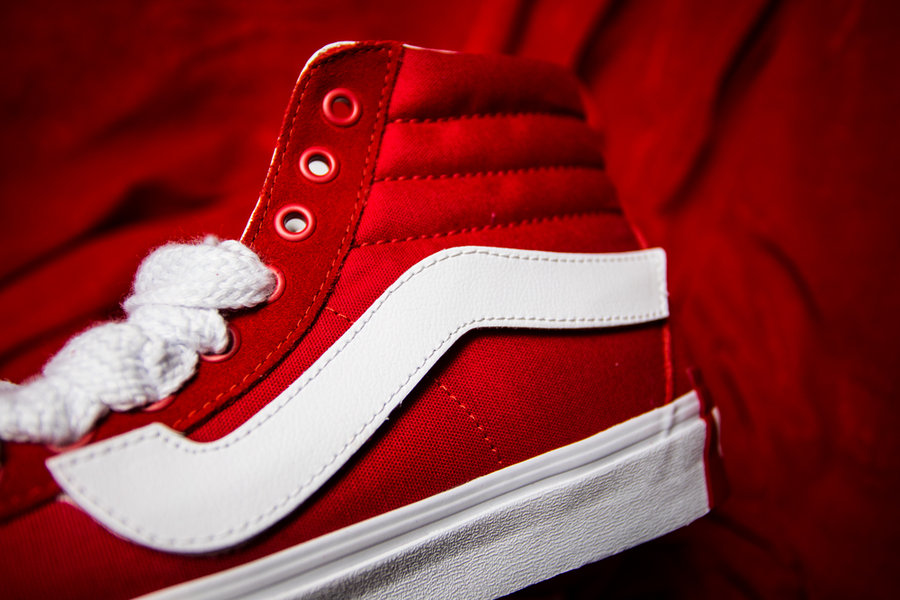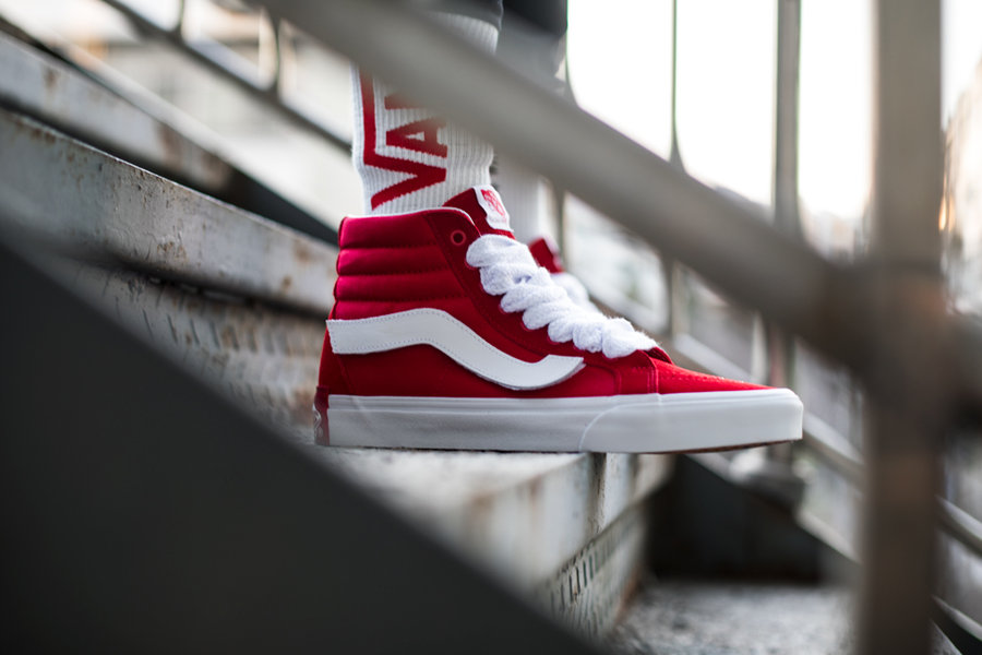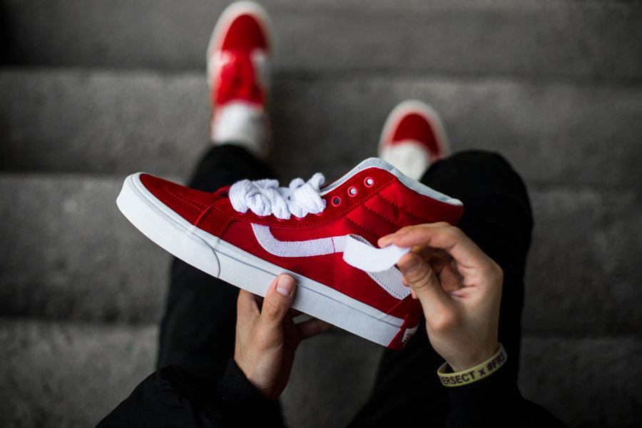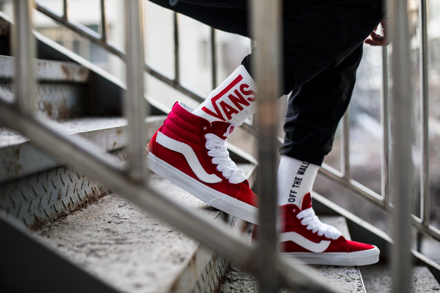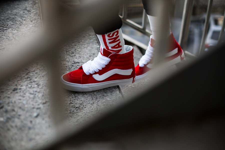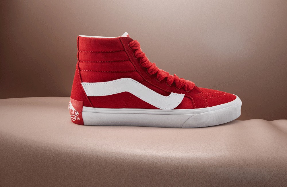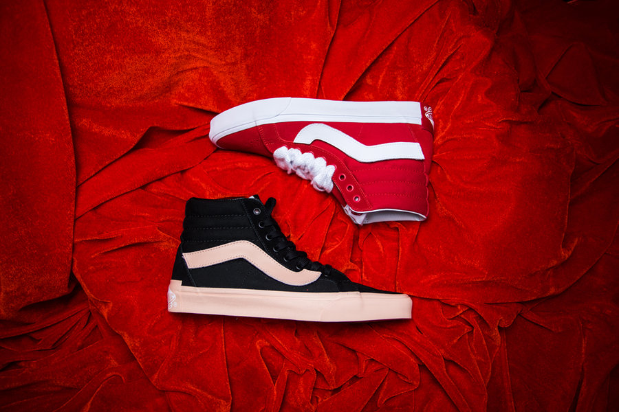 Sk8-Hi 沿用 Vans 经典黑、白、红三色作为主调的同时,也加入肉粉色衬托联名身份。