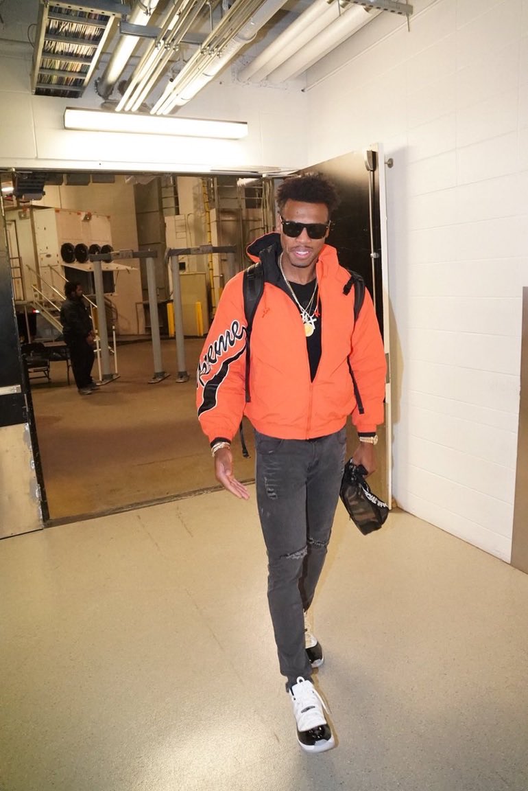 詹姆斯则穿上了超限量的 CONCEPTS x Dunk SB Low 绿龙虾,罗斯则选择了白斑马 Yeezy 350 V2 “Zebra” 作为场下装束的鞋款。