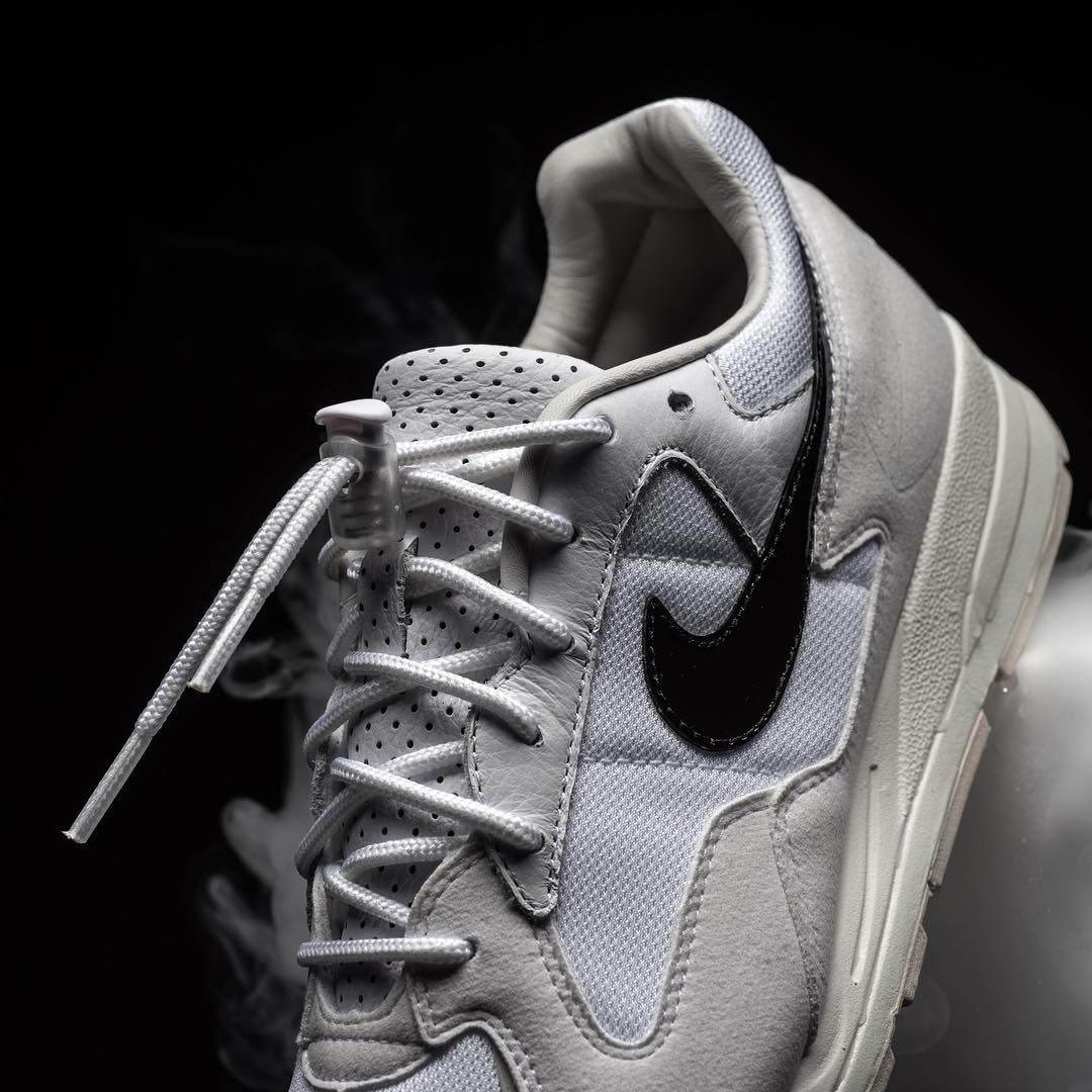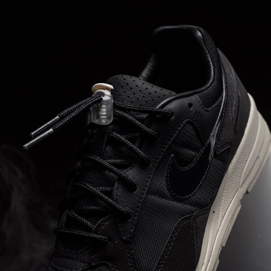 配色方案以黑色、珍珠白为主,延续 Air Skylon2 的复古跑鞋造型。多种材质拼接的鞋面,辅以漆皮 Swooch 点缀,鞋带处依旧辅以 Fear Of God 联名系列标志性的鞋带扣装扮,彰显尊贵气质。
