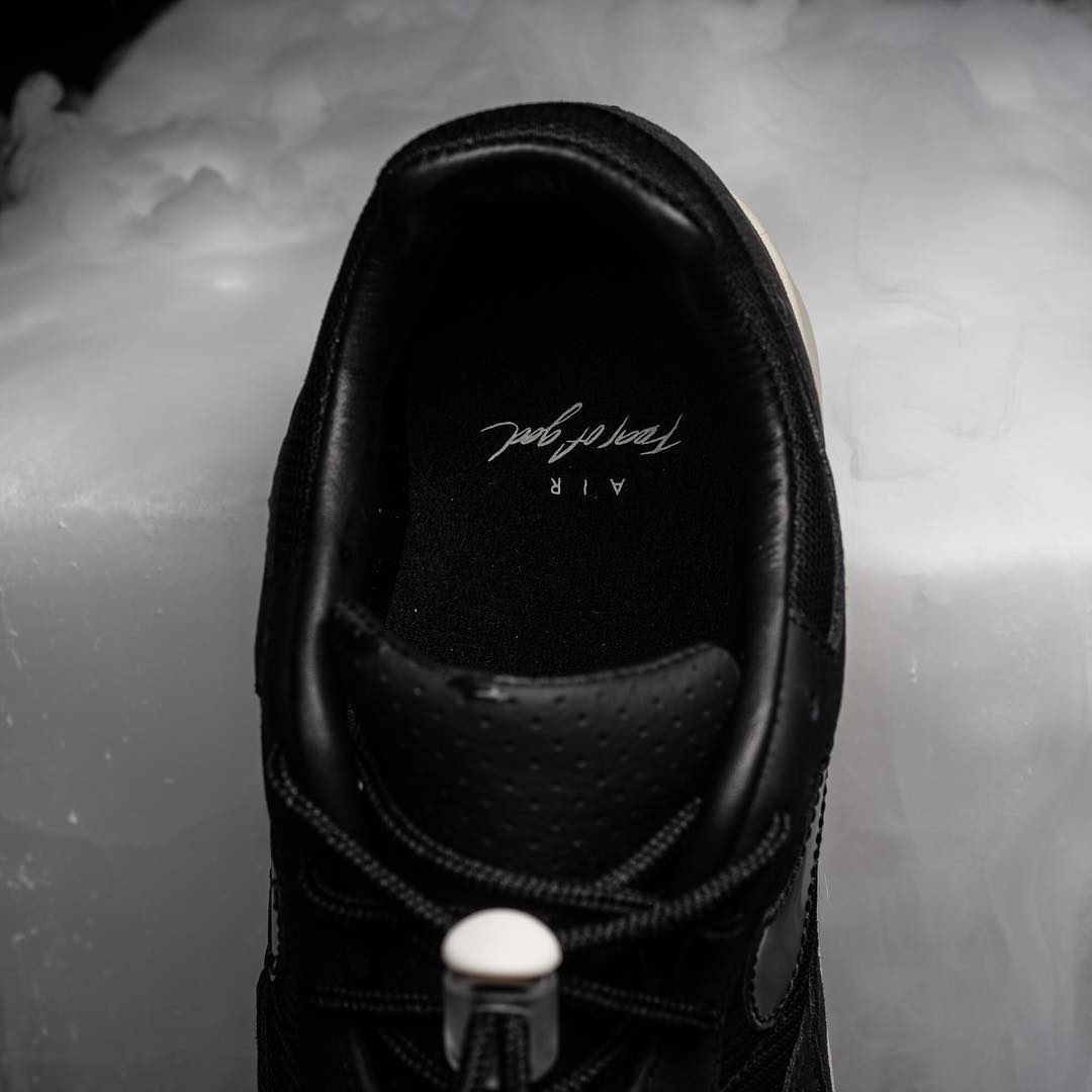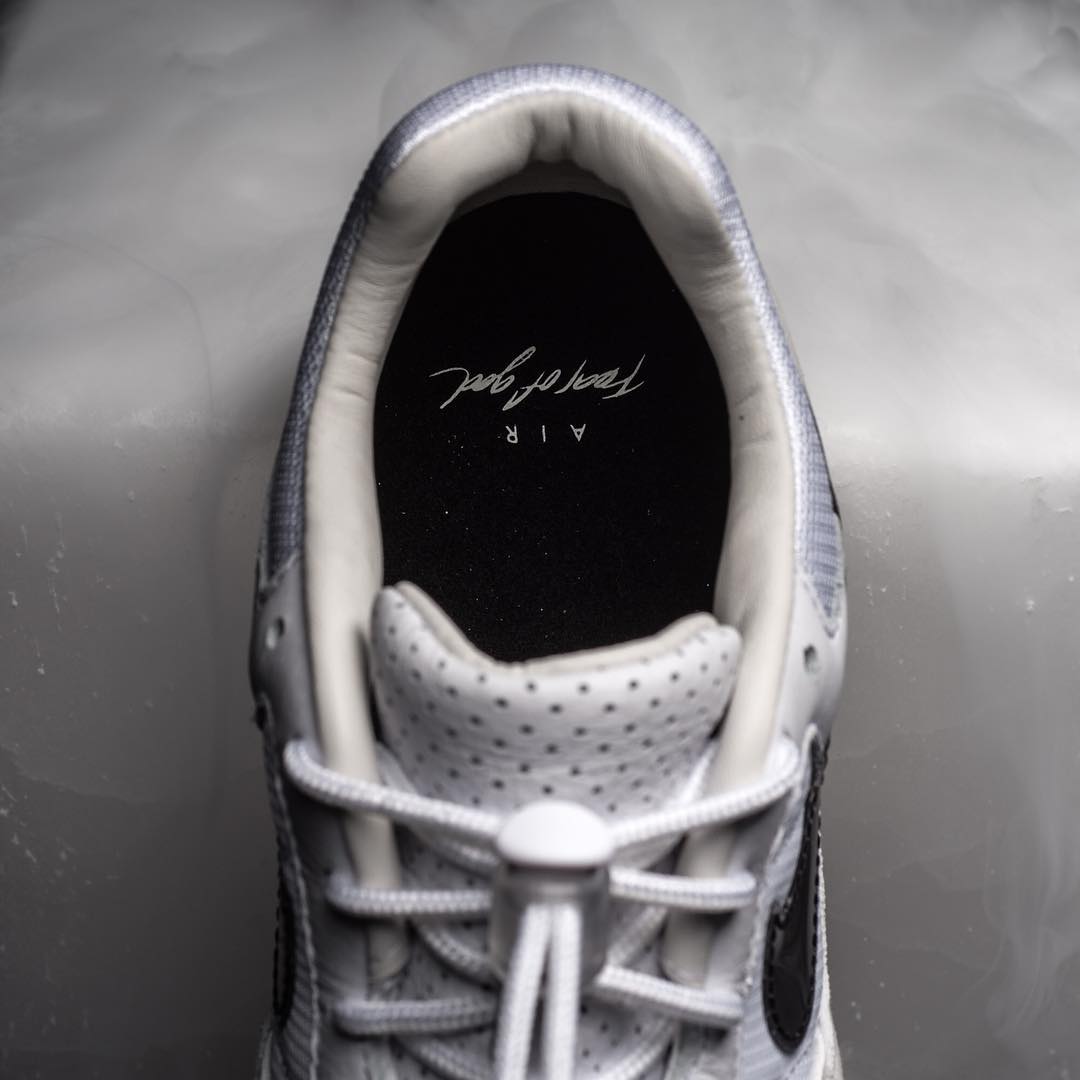 后跟处的 “Fear of God” 字样灵感源于 “Air Flight”,鞋头处还加入了 3M 反光材质,想必黑夜同样能提供不俗的辨识度。