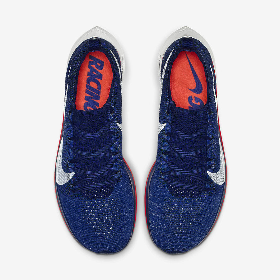 在白蓝配色的 Nike Zoom Fly Flyknit 曝光之后,同样的配色方案又出现在了更专业级定位的 Nike VaporFly 4% Flyknit 上!