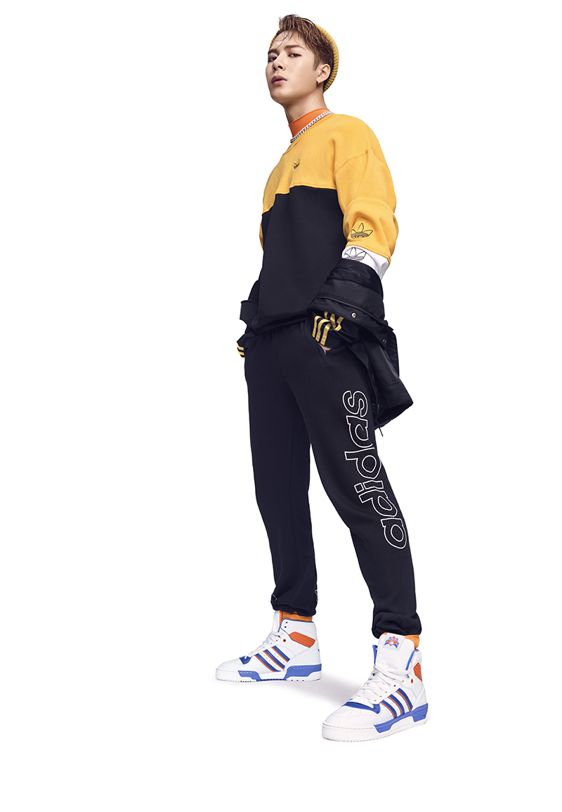 adidas Originals 似乎也了解大家的心声,在最新型录中,王嘉尔就上脚了一款极为复古的超高帮球鞋。